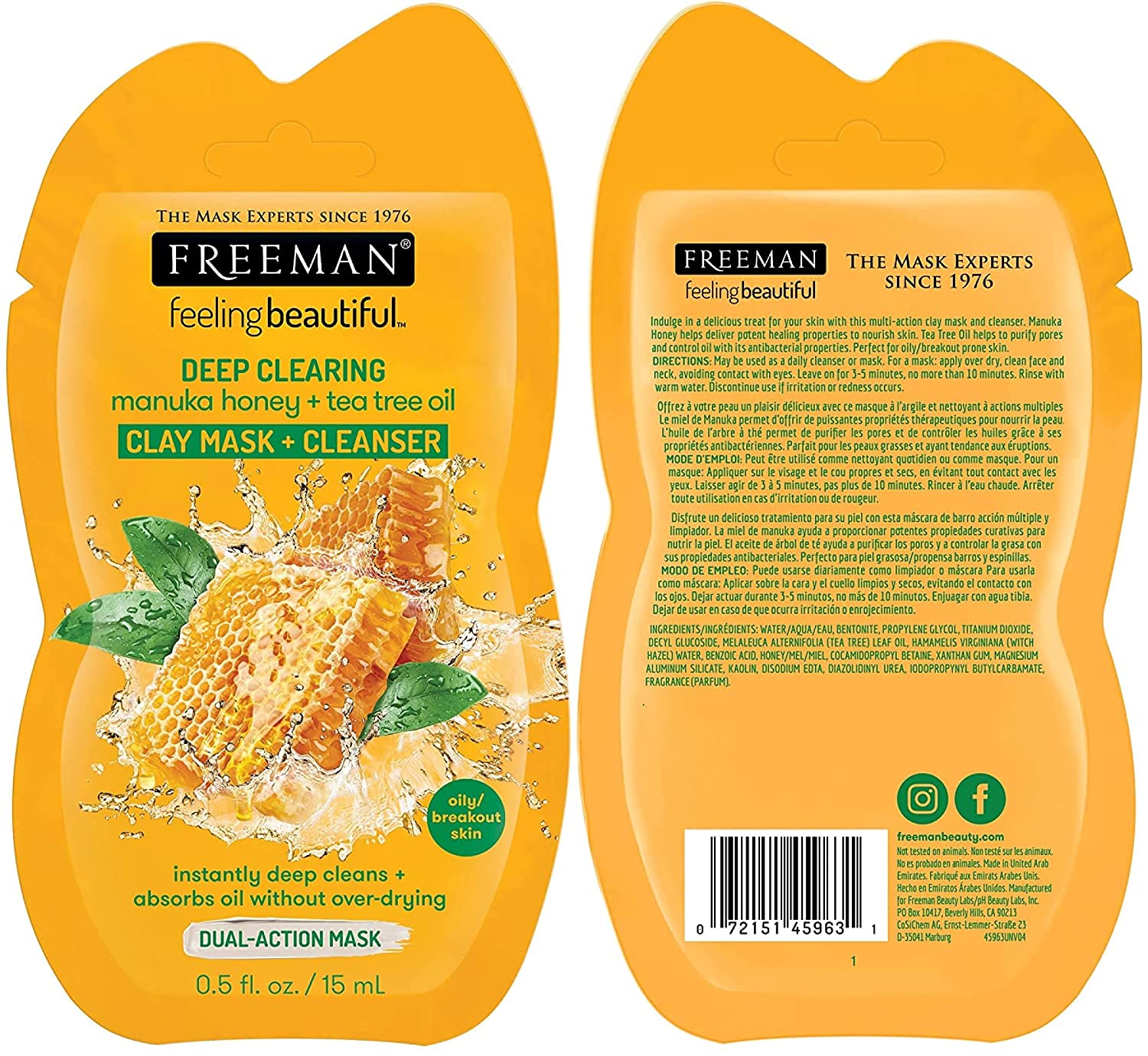 • Deep Clearing Manuka Honey + Tea Tree Oil Clay Mask + Cleanser instantly deep cleans absorbs oil without over-drying