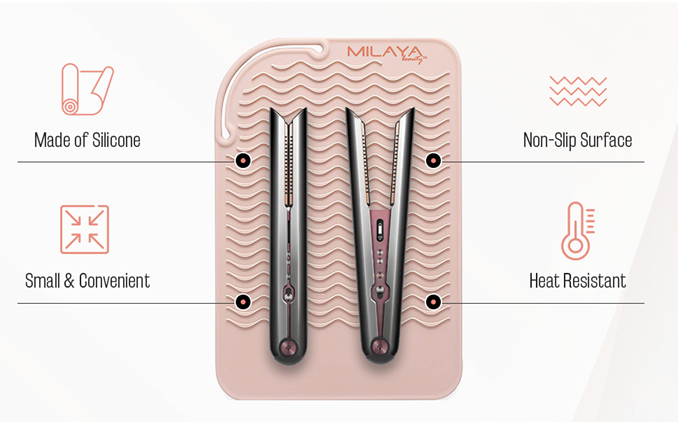- SURFACE PROTECTION - Silicone mat safeguards any type of delicate surfaces from heat damage of flat irons, curling wands and other hair styling tools. Ideal for home, work, travel, storage, hair salons and hairstylists on the go. No more damage counter-tops and furniture.