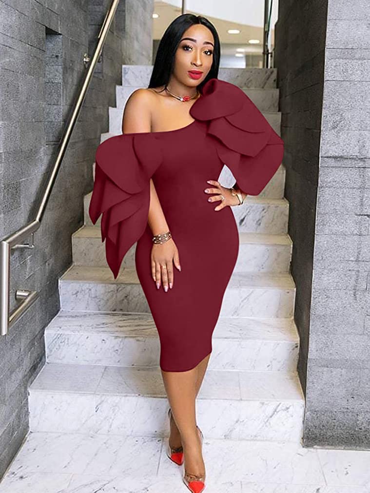 It can be worn in two ways: one shoulder dress and round neck dress,no matter which way you wear it, it can perfectly show your body curve.