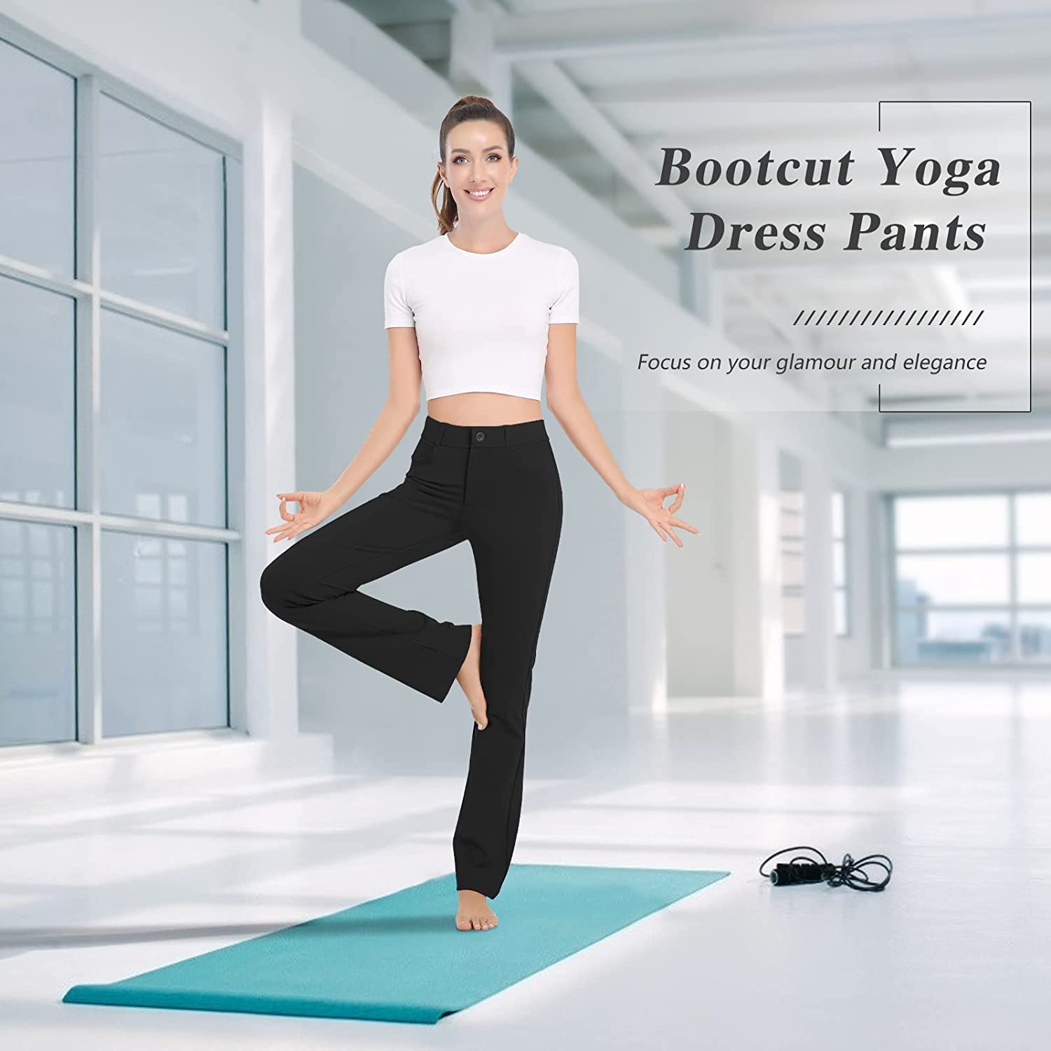 SLIGHT FLARE & ZIPPER-FLY STYLE: Featuring bootcut leg to conform to your body. High elastic waist, classic zipper fly and button closure. These relaxed fit pants are suitable for work or casual.