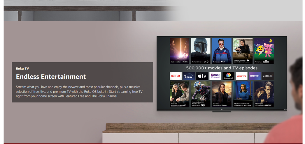 The 4-Series TCL Roku TV offers stunning 4K picture quality with four times the resolution of Full HD for enhanced clarity and detail, as well as endless entertainment with thousands of streaming channels. High dynamic range (HDR) technology delivers bright and accurate colors for a lifelike viewing experience. In addition, your favorite HD shows, movies, and sporting events are enhanced to near Ultra HD resolution with 4K Upscaling. Your favorite broadcast TV, streaming channels, gaming console and other devices are front-and-center within a simple, customizable home screen. There’s no more flipping through inputs or wading through complicated menus. The super-simple remote—with about half the number of buttons on a traditional TV remote—puts you in control of your favorite entertainment and includes one-touch shortcuts to popular channels like Netflix.