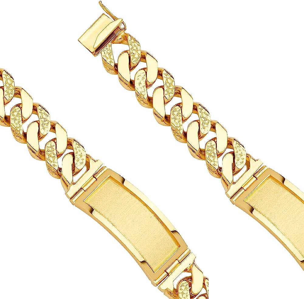 14KY Solid Link ID Bracelet - 9.5" | Gold Chain Bracelet for Men and Women | Solid Gold Bracelets for Womens Mens Girls Boys 14k Real | Birthday Valentines Gifts For Adults | Weight 150.7 | Jewelry Gi