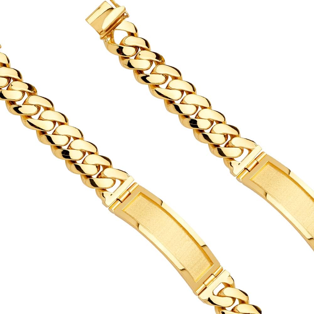 14KY Solid Link ID Bracelet - 9" | Gold Chain Bracelet for Men and Women | Solid Gold Bracelets for Womens Mens Girls Boys 14k Real | Birthday Valentines Gifts For Adults | Weight 126.1 | Jewelry Gift