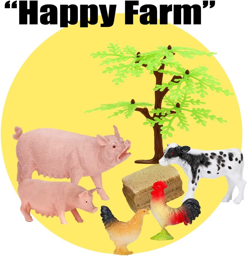 -Brand new and high quality.-The large farm animals toys includes a assortment of plastic farm figures, realistic colors, they will help educate your child and imagine wonderful interactions between their dairy cattle, horse, sheep and pig, to build a more realistic farm animals world. Kids can create their own farm game setting, enhancing new vocabulary and language skills through imaginative play.-Farm toys are great to use with home school, for fun bobble entertainment during a road trip, as props for your child's science experiment, or even a trip to grandma's house.