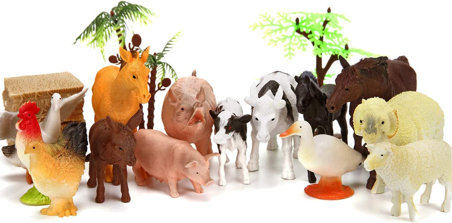- ★【PLAY & LEARN And INCREASE PARENT-CHILD INTERACTION】: Looking for a way to keep your kids entertained while learning? They’re the perfect farm pretend play props, kids can create their own game setting, enhancing new vocabulary, language skills and hand-eye coordination through imaginative play, also can and release stress. And this farm figures set could enhance the relationship between you and your kids.