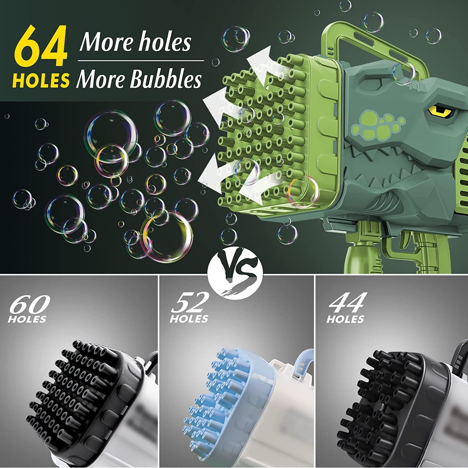 69 HOLES - Our bubble gun has 64 bubble holes and can blow thousands of bubbles at a time. It also comes with colored lights for surprising effects when playing at night!