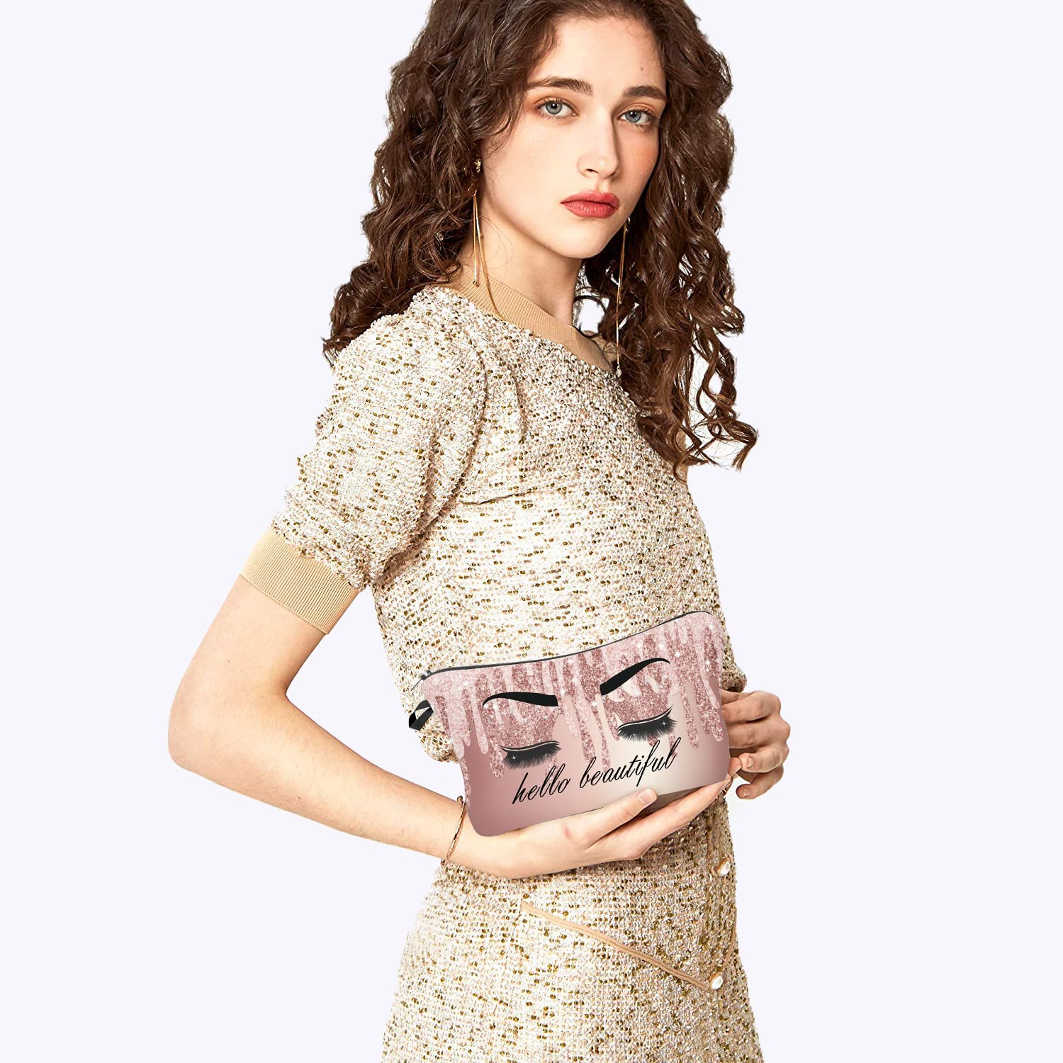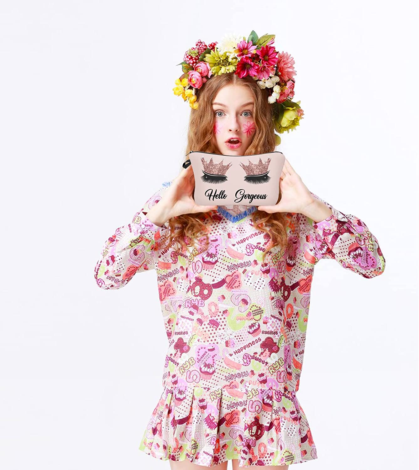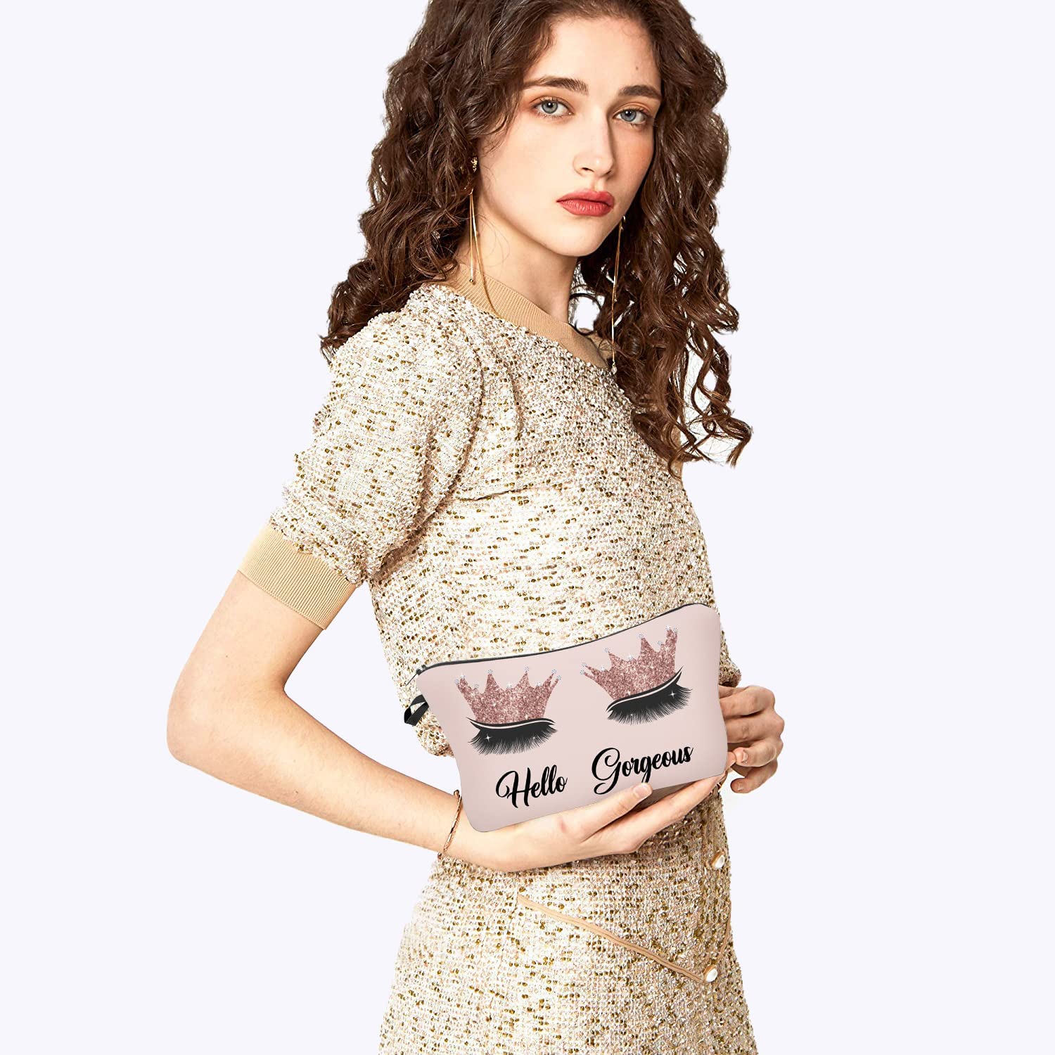 Hello Gorgeous Makeup Bag for Purse Eyelash Pink Cosmetic Bags for Women Inspirational Gift for Girls Small Funny Cosmetics Glitters Eyeshadows Travel Bag Cases for Toiletries Accessories Organizer