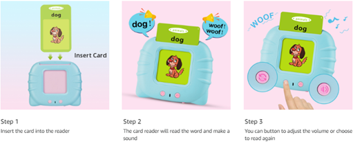 Toloso talking flash card helps toddler recognize new words by inserting cards. Interesting pictures and vivid sounds can cultivate toddler's imagination. It is very suitable for toddler aged 2-5.