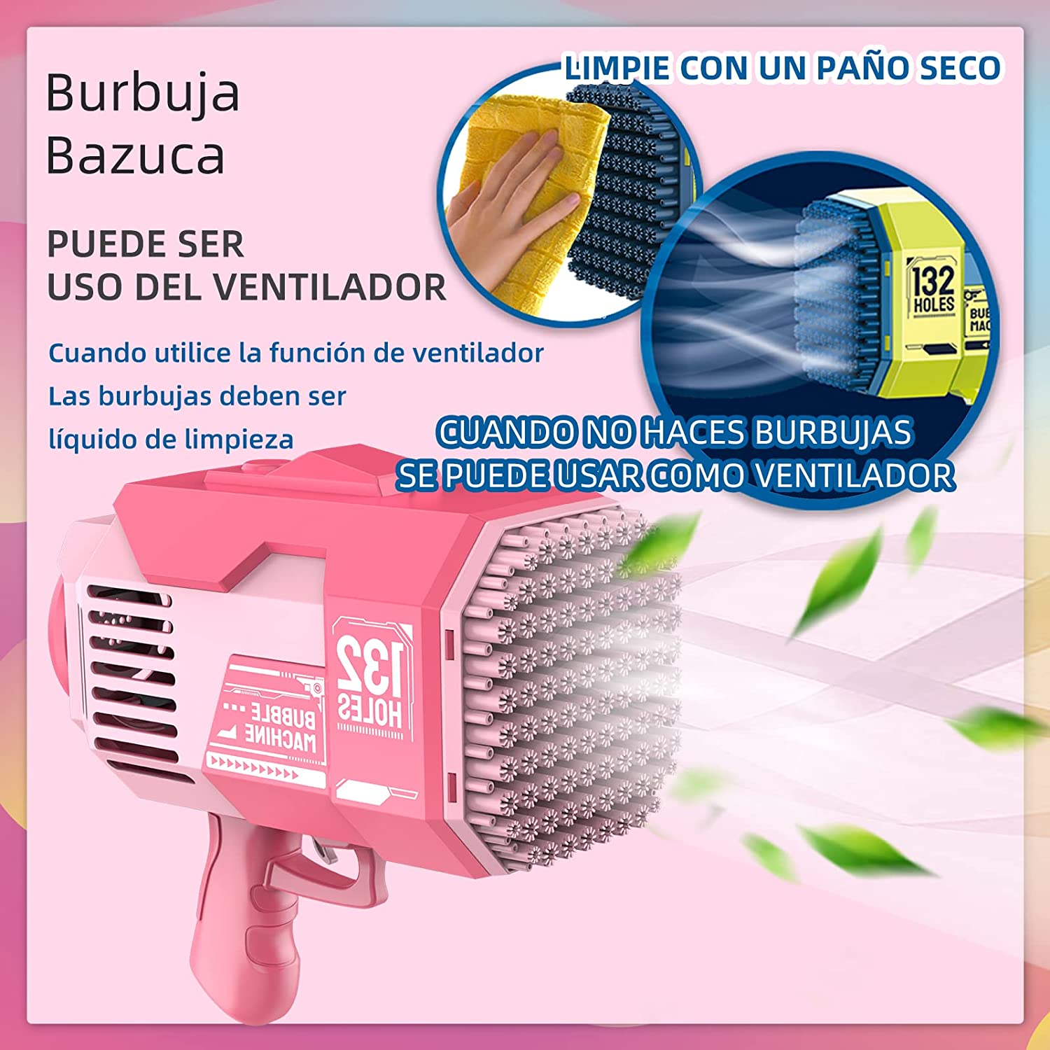 【Safety Cooling Fan】- When children get tired of chasing bubbles, they can use the bubble gun as a small fan to bring cool and comfortable wind. This way, they won't feel too hot while playing.