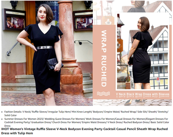 Classic Sheath Cocktail Dresses Style, Super Flattering, Sleeves with Ruffle Design Covers Your Arms Look More Slimmer, Ruched Wrap Around the Waist can Hide Tummy Perfectly, the Cross Hem Highlights Your Sexy Legs.