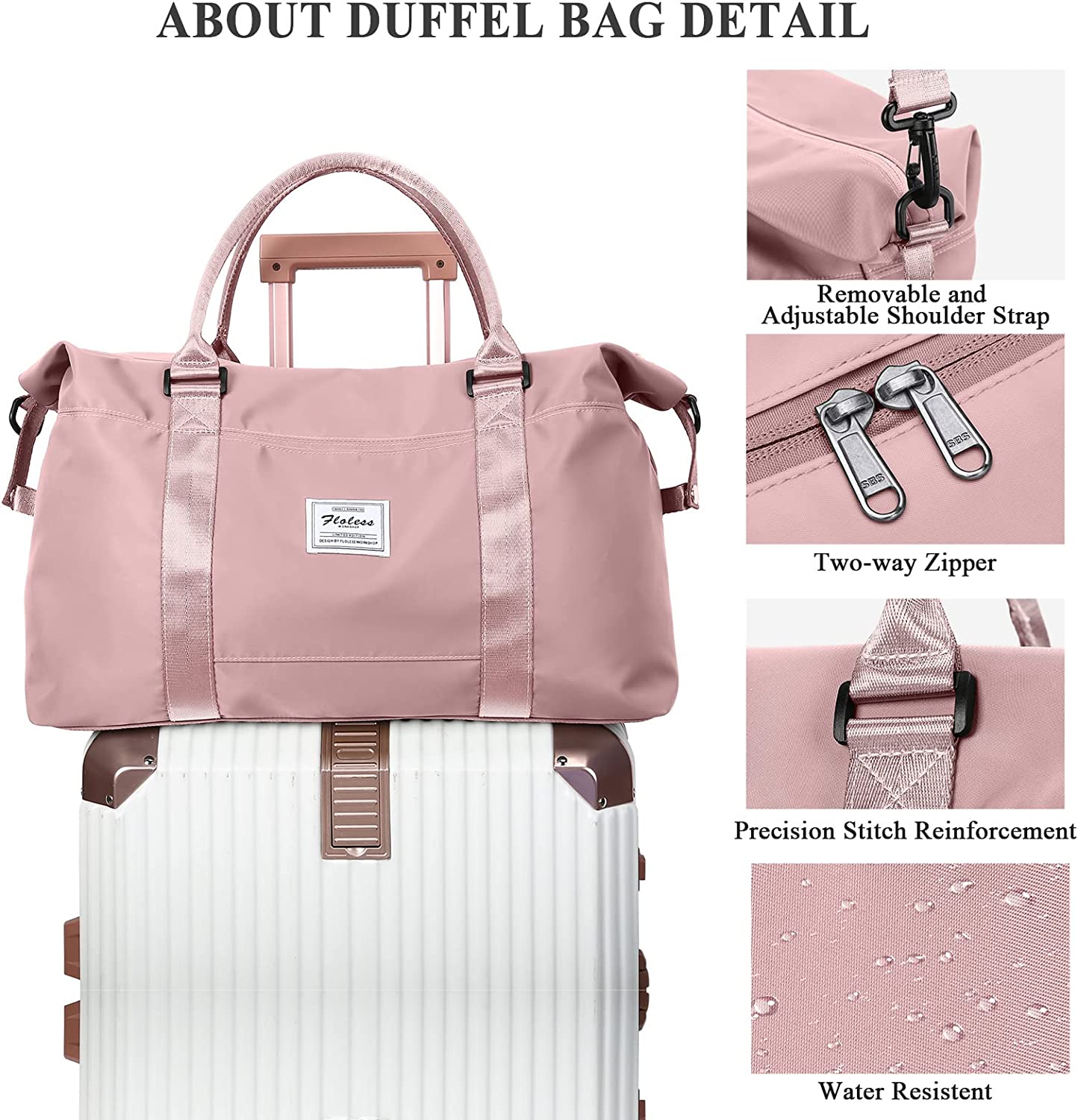 【Duffel Bag with Wet Pocket】This travel duffle bag for women comes with a wet compartment that way you can separate items in your bag. For example you go to the beach and want to change but your clothes are wet and you don't want to get everything else wet. Also if you have travel size toiletries that you are worried about leaking.
