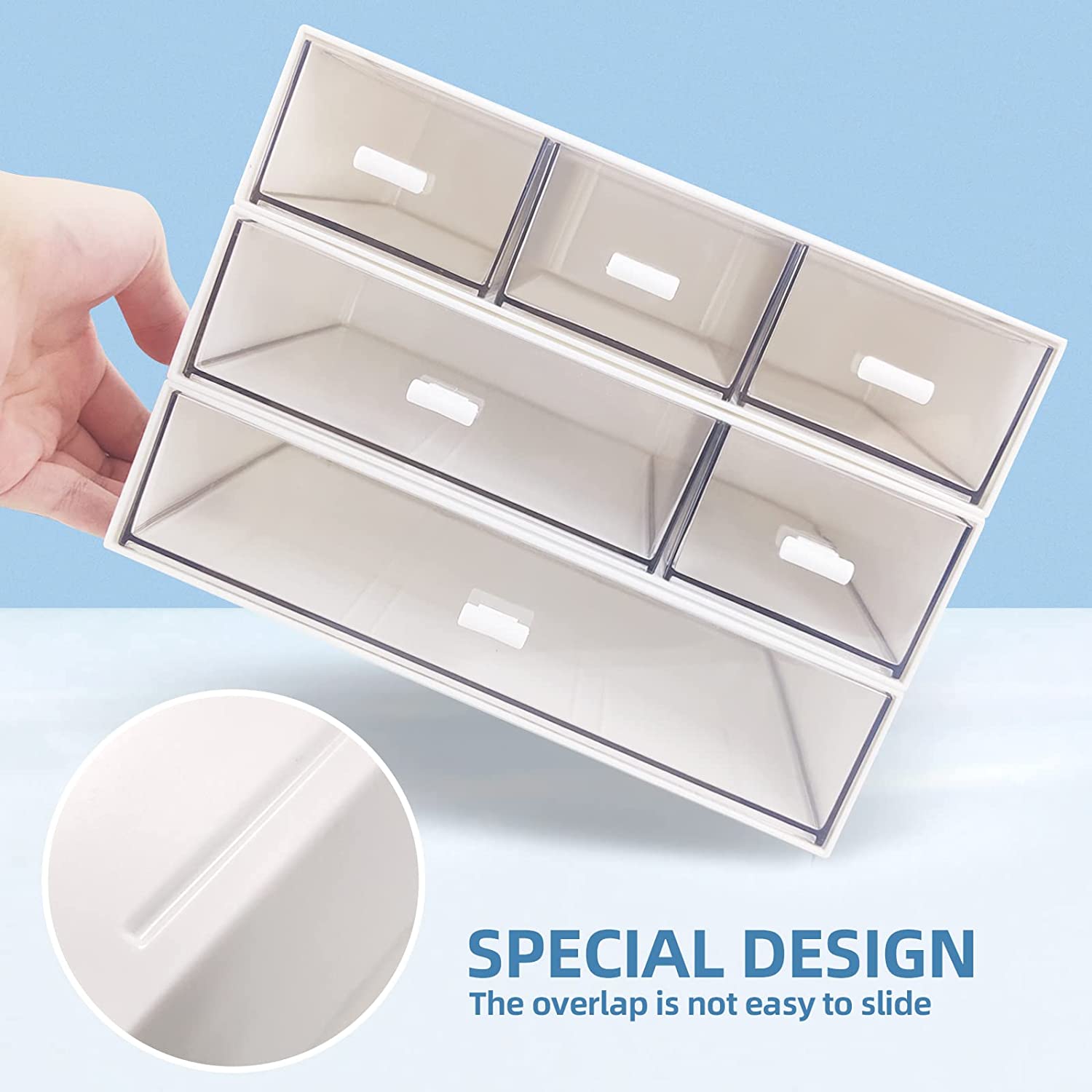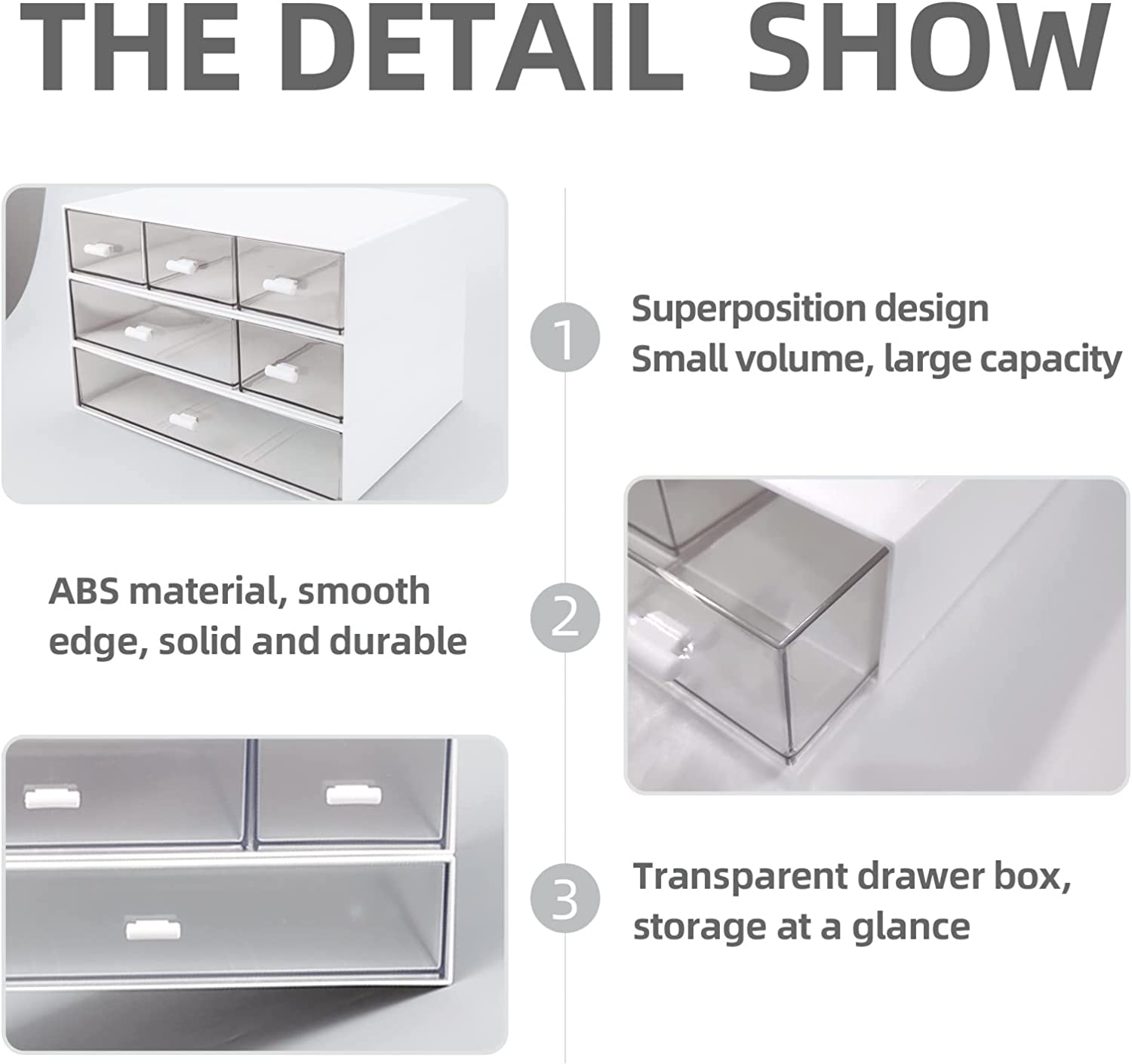 High quality material: plastic 6-drawer desk is made of ABS material, which is durable. In addition, the drawer has a handle design, which makes it convenient to pull and take out.