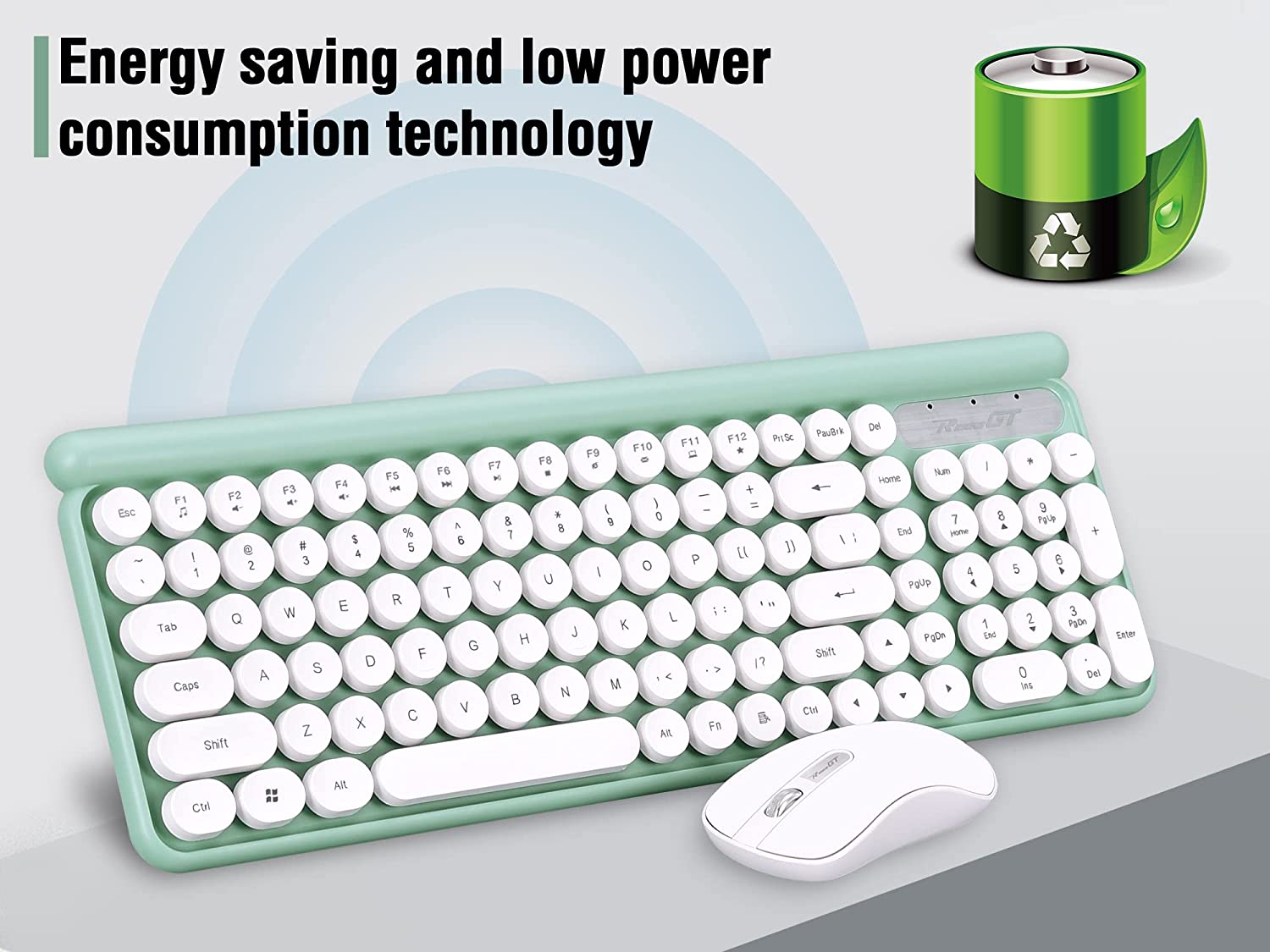 【Power Saving Design】The compact wireless typewriter keyboard goes to sleep after 8 minutes of no typing. The wireless mouse will enter power-saving mode after 5 minutes of inactivity and can be awakened by simply moving or clicking the buttons. Automatic power-saving settings ensure the wireless mouse and keyboard conserve power when not in use. (Note: battery not included in the package)