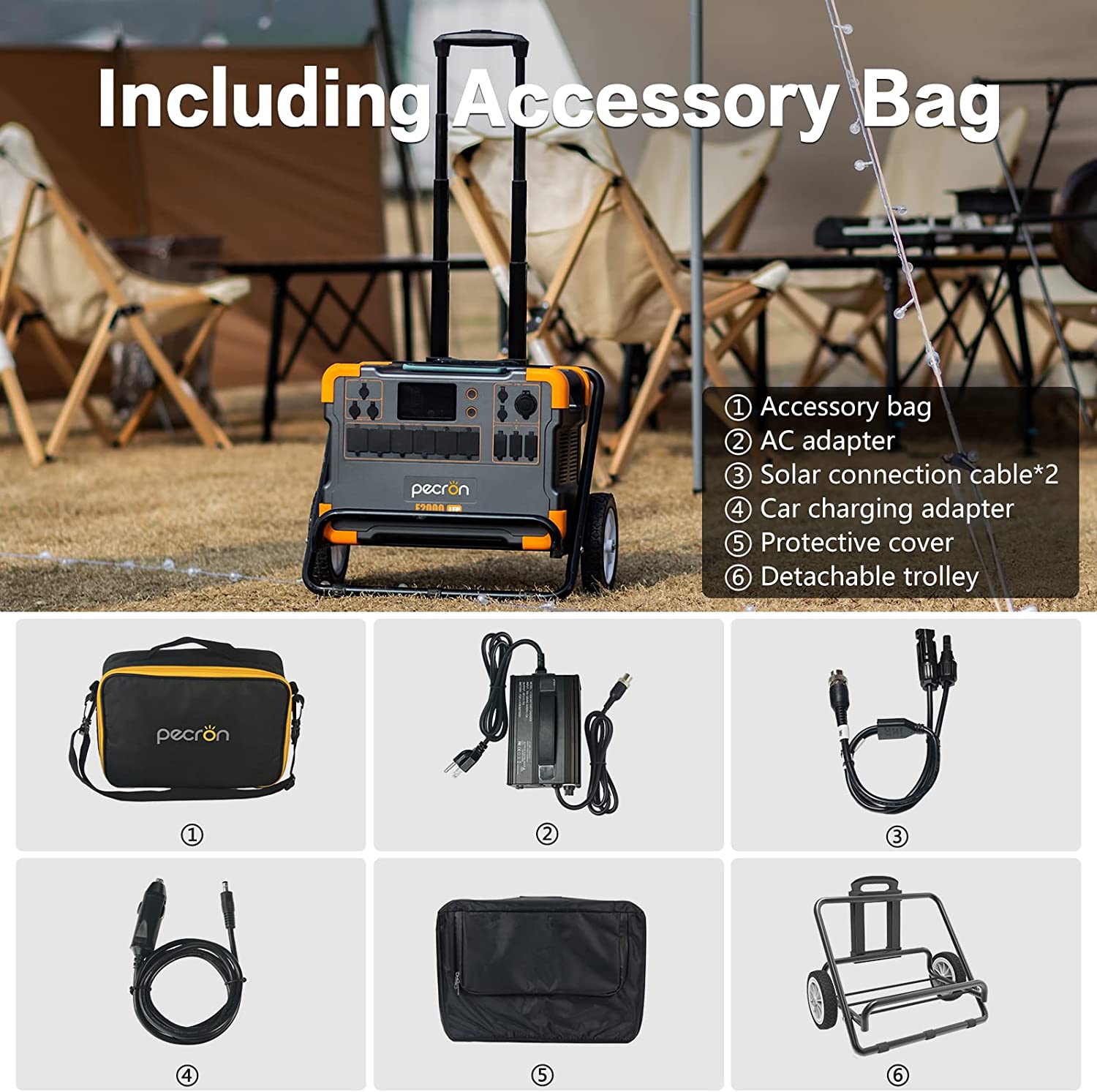 What You Get: 24-month worry-free warranty and 24hrs/7d friendly customer service. pecron E2000LFP portable power station,Accessory Pack,AC Power adapter ,5-Pin Aviation Plug To MC4 Solar Charging Cable*2;Car Charger cable;User manual.