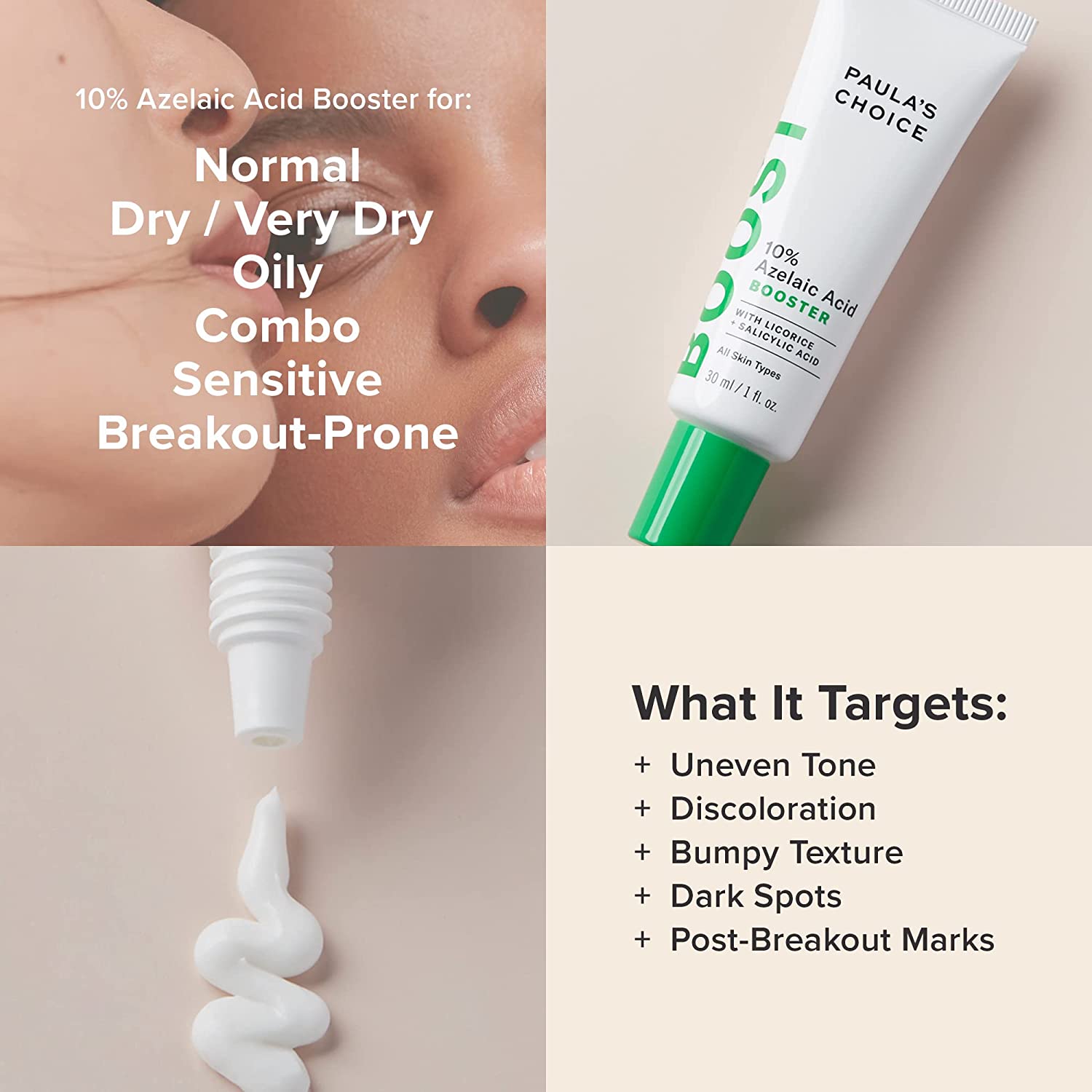 • 10% AZELAIC ACID BOOSTER: Research-backed azelaic acid targets post-acne marks, discoloration while licorice root works to soothe.