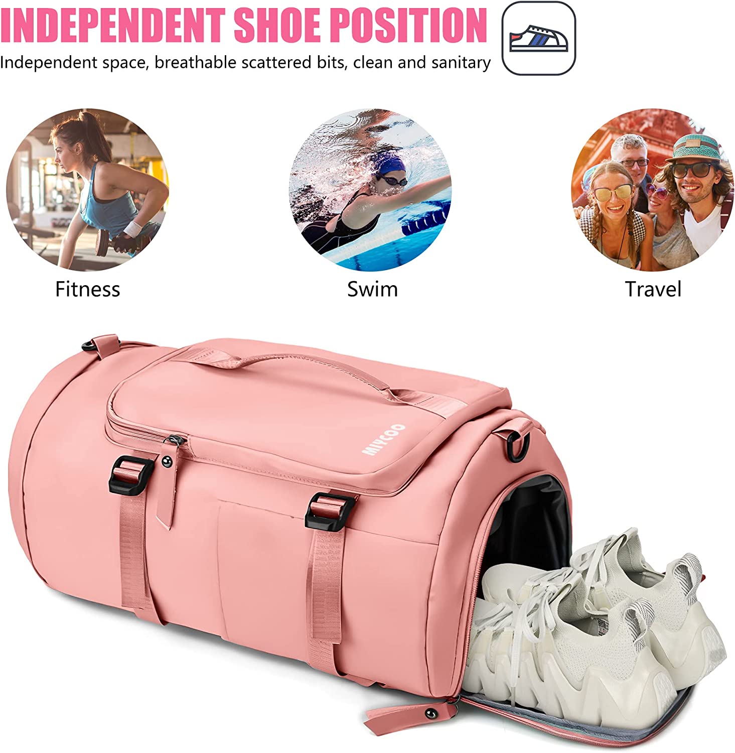 • 【Separate Shoe Compartment】: The shoe compartment is separate from the main compartment pocket. This gym bag for women delivers roomy main compartment to store your clothes, iPad and computer.
