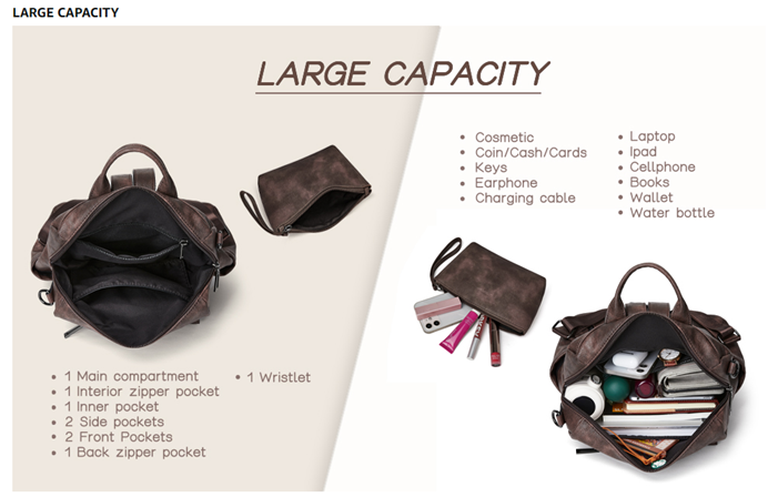 • 【HIGH-QUALITY MATERIAL】The backpack purse for women is made of sturdy and soft PU leather, zippers slide nicely and straps are very durable, comfortable and good quality. The snaps are magnetic and all the stitching has been done well.