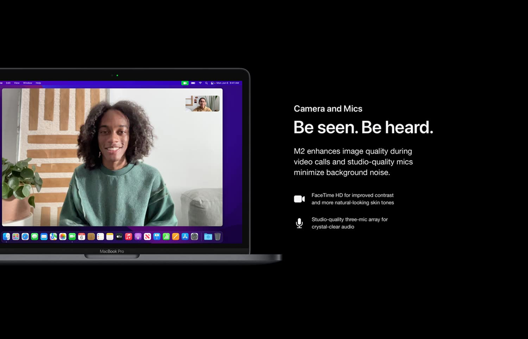 HD CAMERA AND STUDIO-QUALITY MICS — Look sharp and sound great with a FaceTime HD camera and three-mic array.