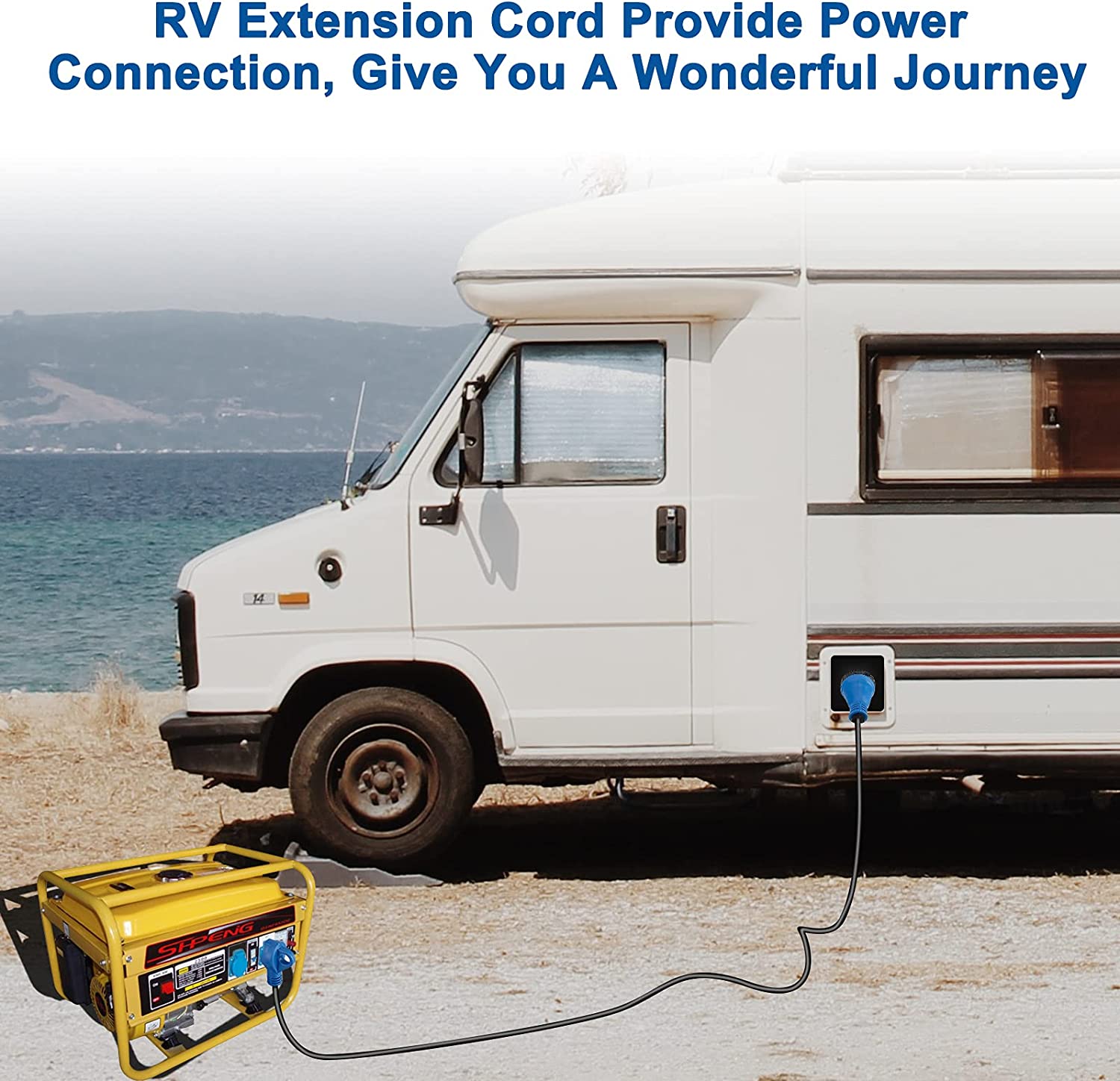 - ⚡【SAFE AND DURABLE CONSTRUCTION】The RV Power Extension cord is constructed with 100% copper wiring and weather resistant 10/3 Gauge STW jacket for Heavy duty, heat resistant PVC sheath that serves as protection from outdoor elements, wear and tear