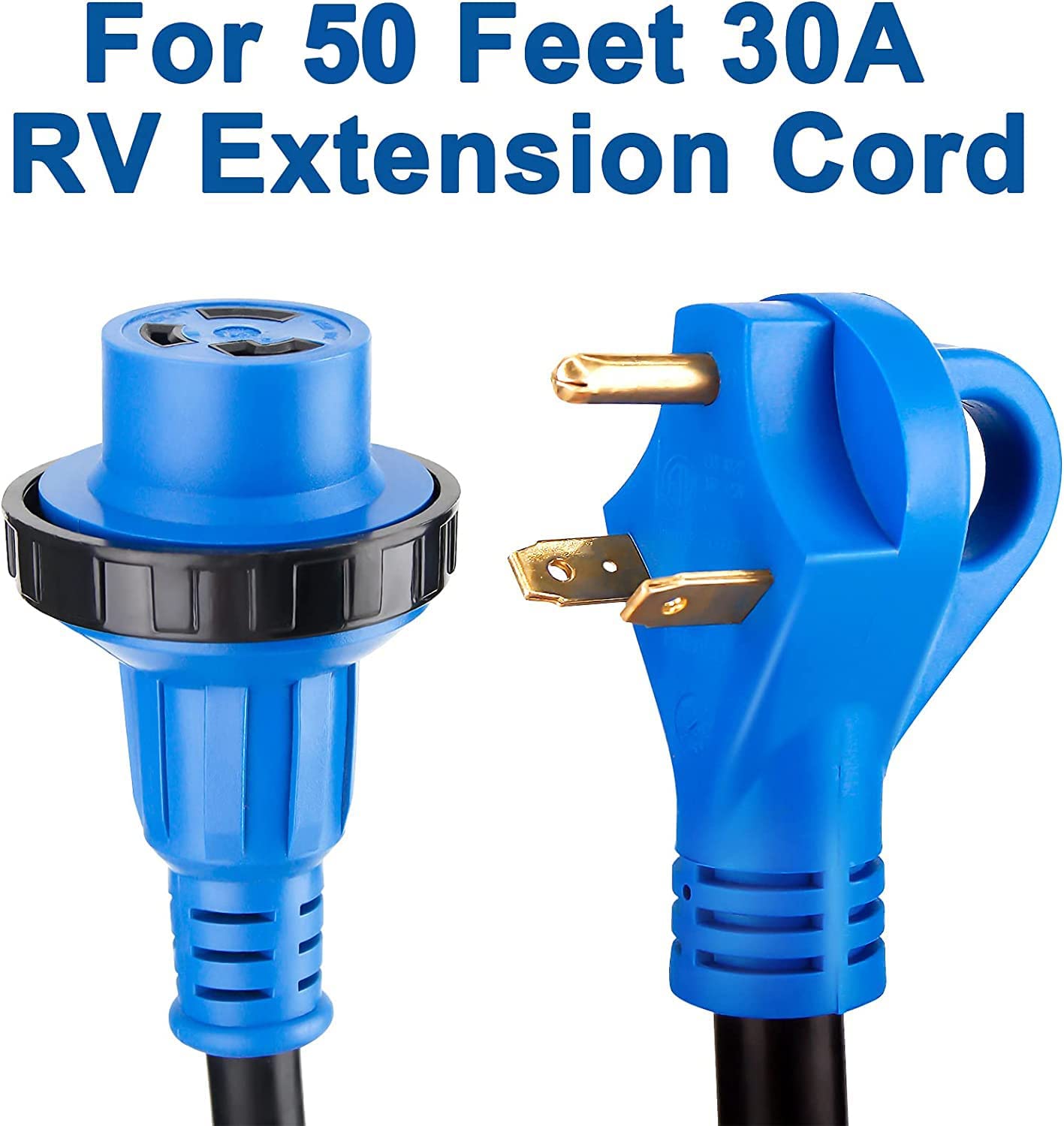 - ⚡【GRIP HANDLE】Equipped with an easy grip handle to make plugging and unplugging this cable easier and safer for you. The RV power extension cord is in black cable blue handle