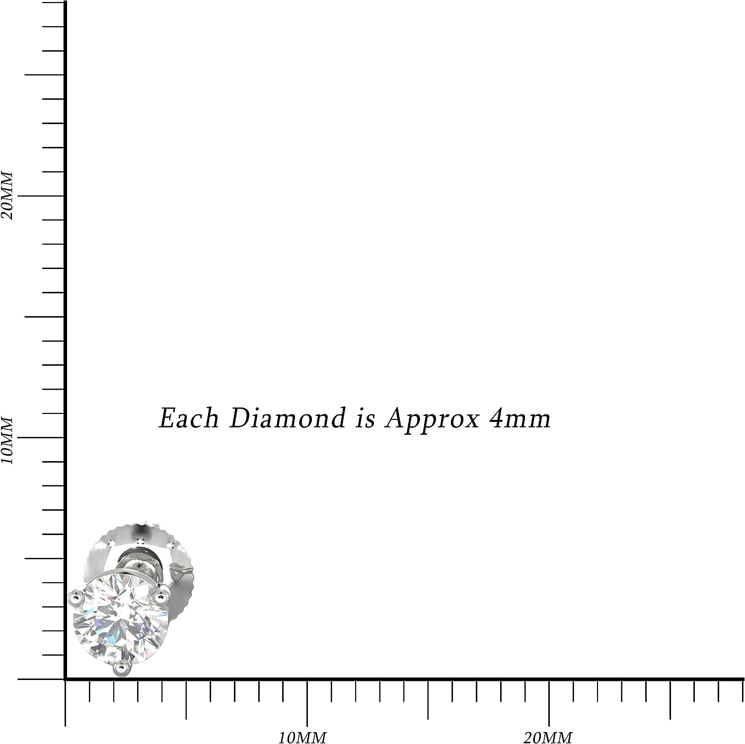 Natural Clarity I1-I2 3 Prong Martini 0.2 cttw to 2 cttw 14K Gold Real Diamond Studs Earrings with Secure Screw Back for Women and Men