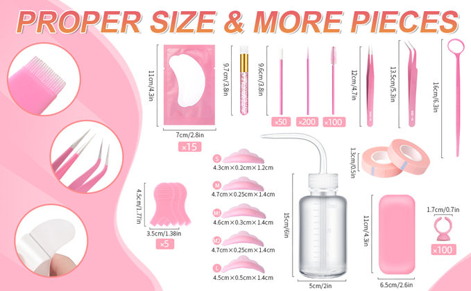 【New Accessories】 Silicone lift pads include 5 sizes (S/M/M1/M2/L) for different lengths of lashes, can lift different curl shapes and angles, reusable, easy to clean, specially designed for lash extension application, eyelash coloring and eyelash perming. Y-brushes fit all eyelash shapes, gently lift and perm natural lashes from the root, and the handle adds a non-slip textured design for an easier grip on the brush. Lip brush is soft, easy to apply eyelash glue or lipstick or lip gloss.