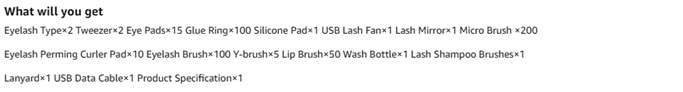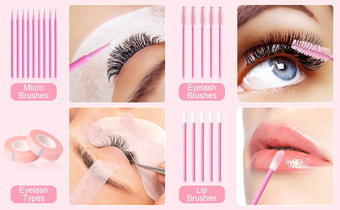 【More Functions】 More accessories! ①Suitable for practicing how to extend eyelashes, or daily eyelash extension supplies: glue ring, eye pads, silicone pad, tweezer, Mini Fan, eyelash brush ②For eyelash perming or lifting, supplies: Y-brush, silicone eyelash perming curler pad, eyelash type, micro brush, lip brush, lash mirror ③For cleaning: Use lash shampoo brush with water to clean eyelashes, face, eyebrows, eyelids, lip