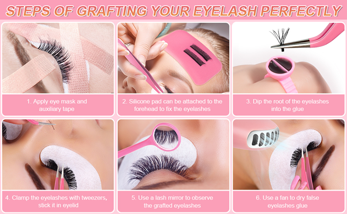 【Details】Two different tweezers are designed for picking up various styles of eyelashes. Straight lash tweezers can separate natural lashes or pick individual lashes. Curved eyelash tweezers are suitable for picking up large preformed fan-shaped and easy-fan curling eyelashes for high-precision grafting. Glue ring and Micro brush for dipping glue.Eyelash tape is breathable and easy to tear to protect the delicate skin around the eyes.