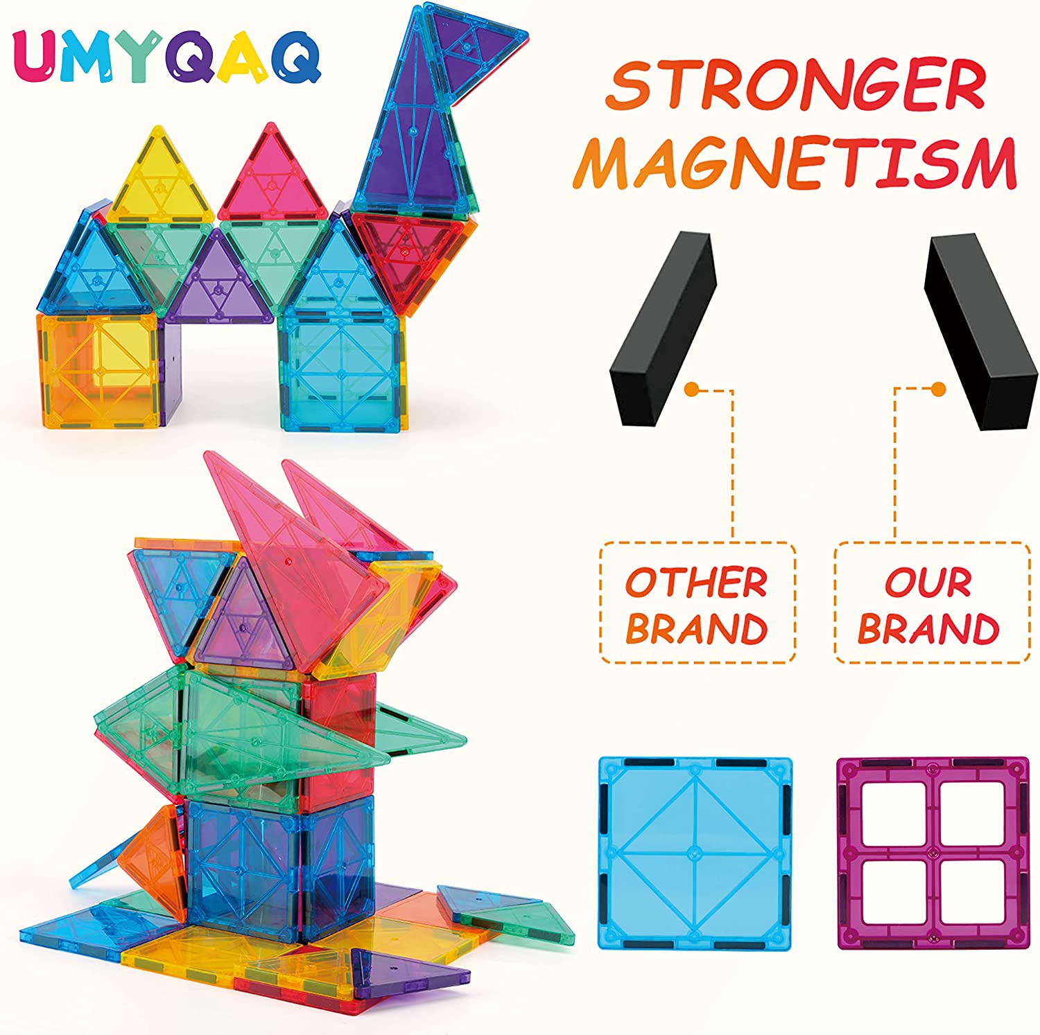 Ideal Gifts for Kids: Magnetic tile set is easy to clean and is a gift for kids' birthday, Halloween, Christmas. Bring joy and fun to your kids and let them grow up happily playing with tile magnets.