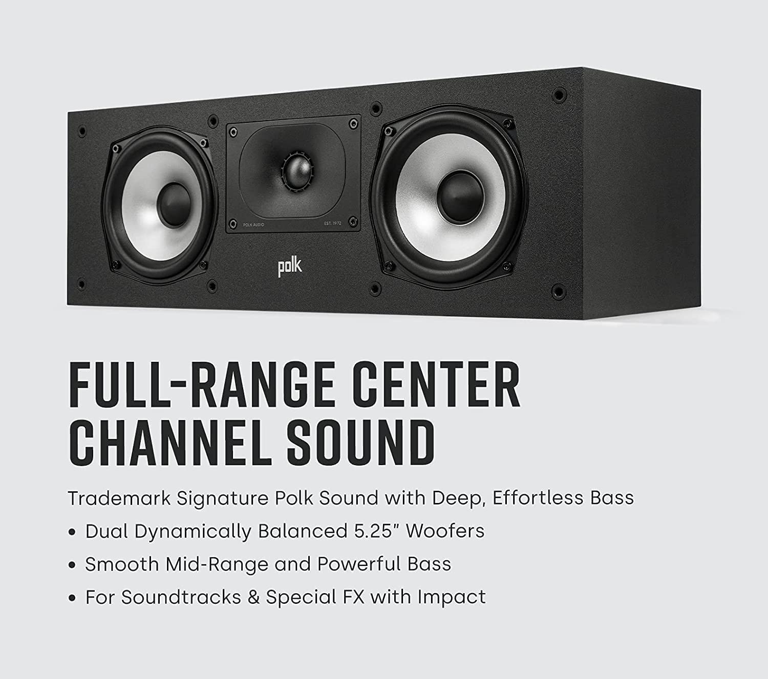 - COMPACT CENTER CHANNEL SPEAKER - Enjoy focused, crystal-clear dialogues and dynamic, hi-res sound with Polk Monitor XT30 that features a 1" Tweeter & (2) 5.25" Dynamically Balanced Woofer for smooth mid-range and effortless bass in an immersive soundstage