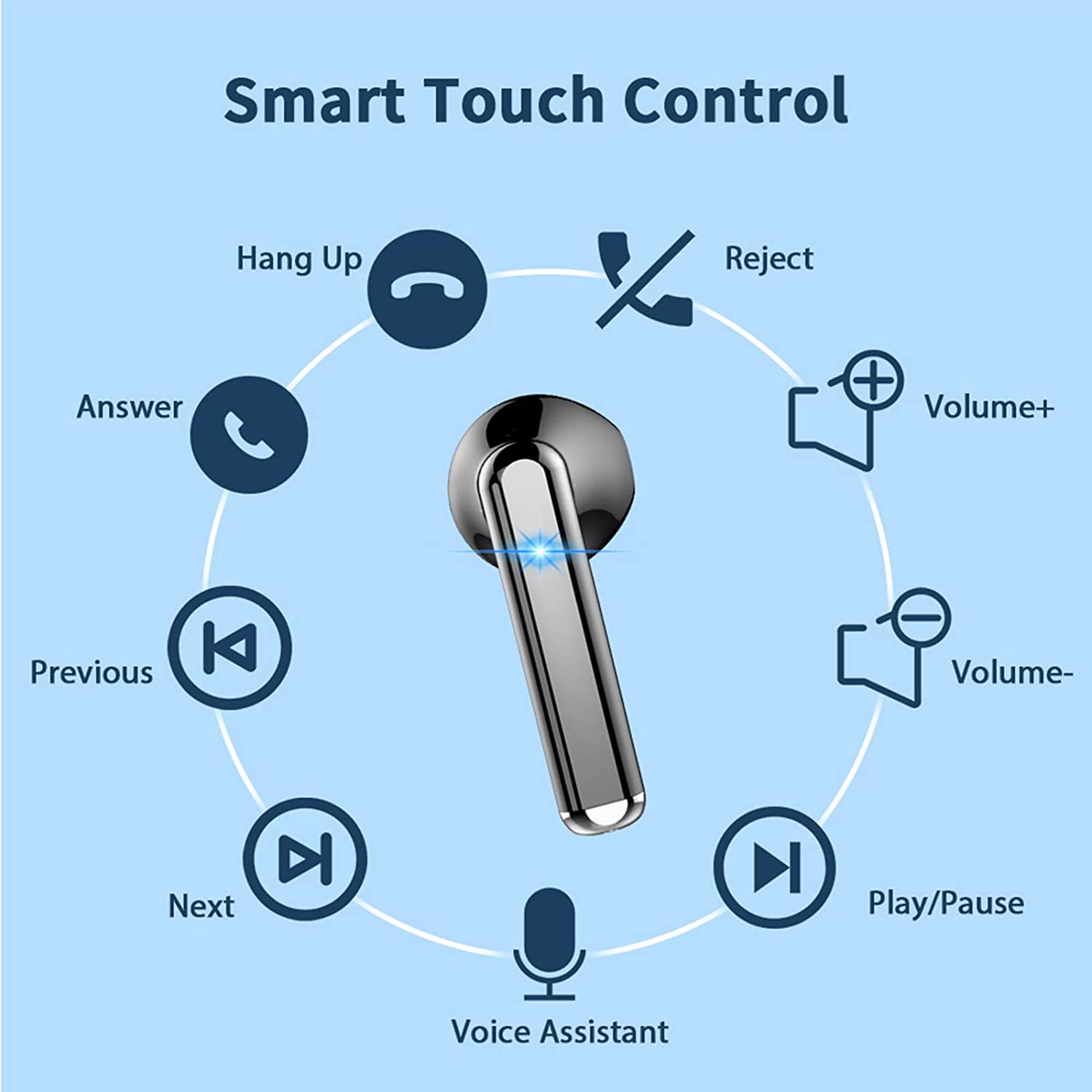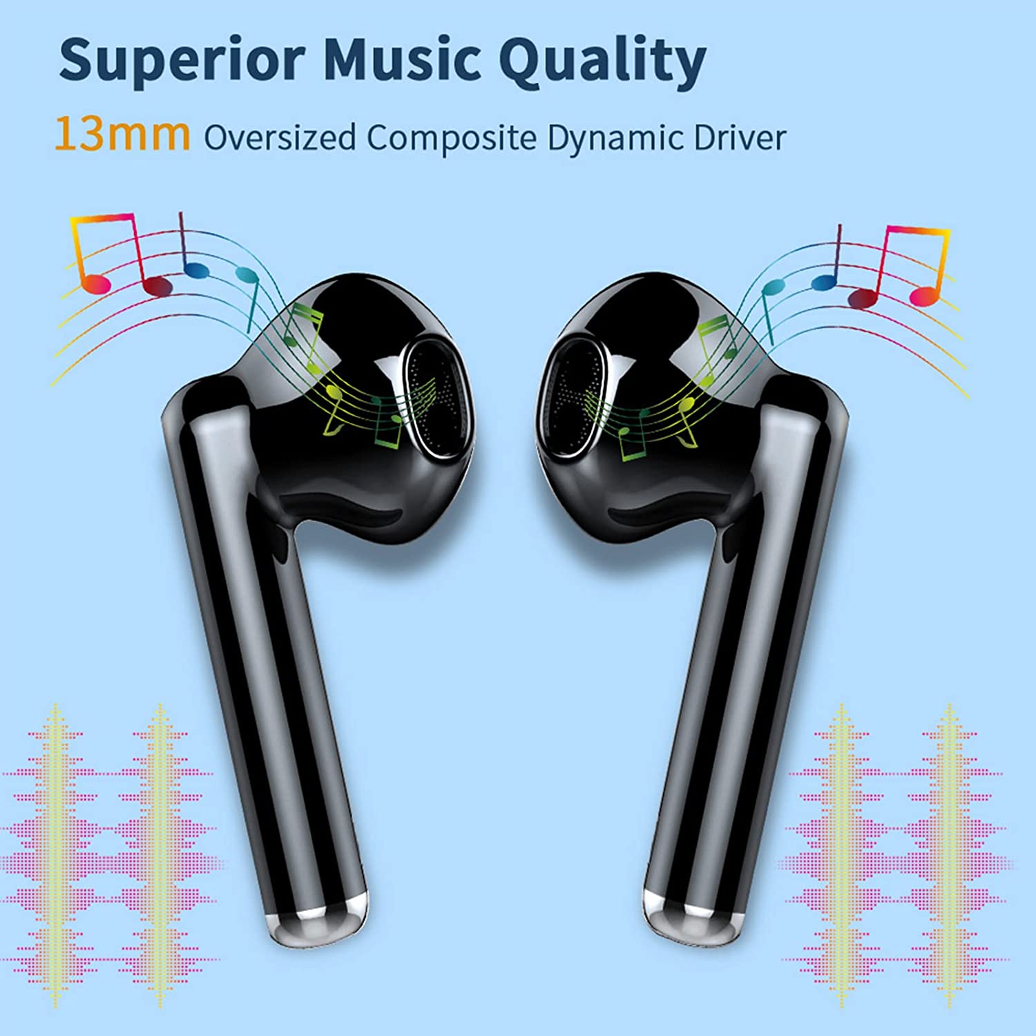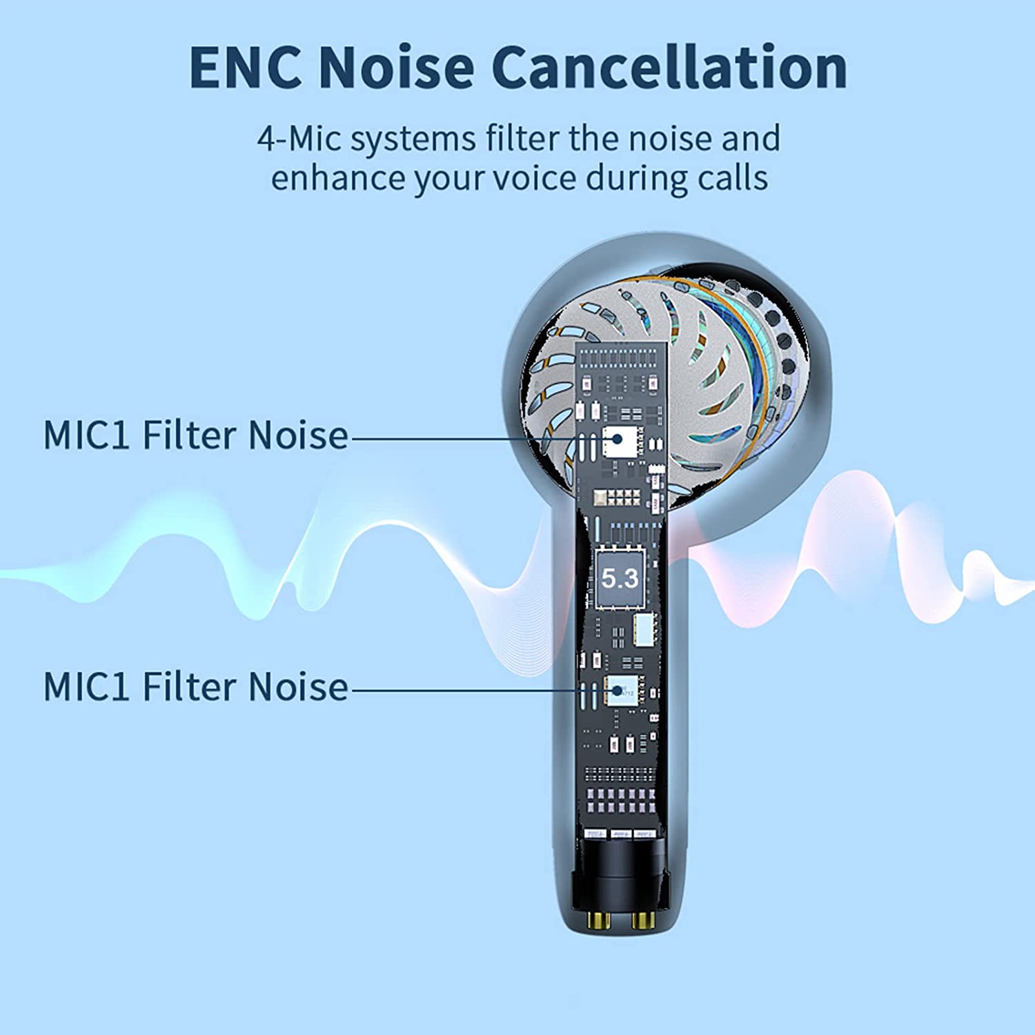 - 4 Microphones Design and Crystal Clear Call: The wireless headphones adopts 4-microphone design and ENC noise cancelling technology. 2 built-in mics in each earbud utilize ENC noise cancellation to ensure clear and truly sound, allowing you to enjoy high quality conversations anytime, anywhere, as if you were talking to someone face-to-face. You will experience a smoother and clearer calls than ever with no more worries about the other party's incomprehension.