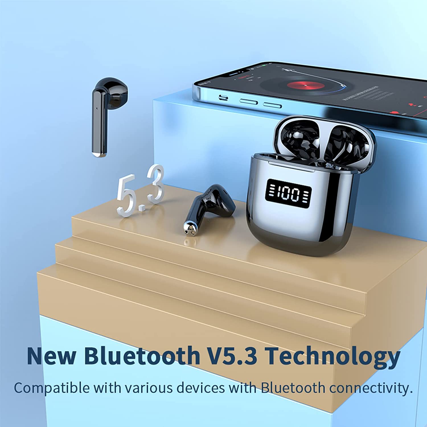 - 2023 Latest Bluetooth 5.3 Technology and True Wireless Earbuds: The wireless earphones are equipped with the latest Bluetooth 5.3 high-performance chip, which provides faster transmission speed, stronger connection stability and longer range of bluetooth(Up to 15m). Equipped with an advanced chip with AAC and SBC audio codex and premium 13mm dynamic drivers, you can enjoy crystal clear music with extraordinary accuracy and clarity. Rid of cord, enjoy true wireless.