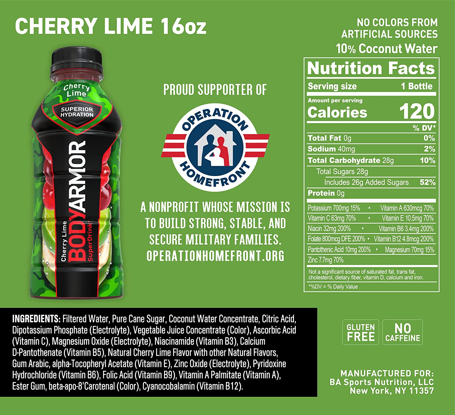 BODYARMOR Sports Drink Sports Beverage, Cherry Lime, Natural Flavors With Vitamins, Potassium-Packed Electrolytes, Perfect For Athletes, 16 Fl Oz (Pack of 12)