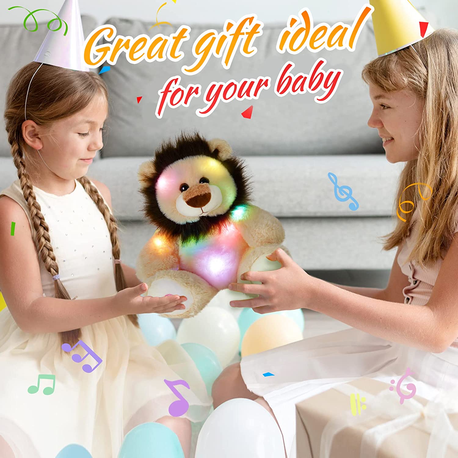 GUARD THE KIDS IN DARKNESS-The cuddly light up stuffed lion can guard the kids in the dark for it features a great function of glowing, there are colorful LED night lights inside, which can bring soothe and sense of security for the children, especially for those who are afraid of darkness or sleeping alone. The cute lion plush toy will be a good friend of your kids and accompany them to have a happy childhood.