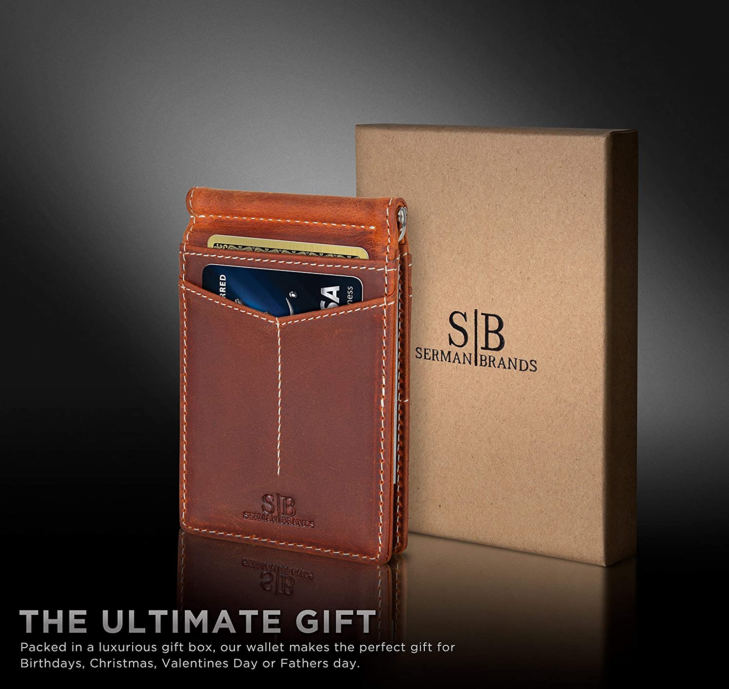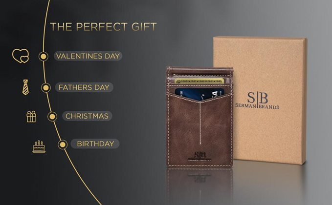SERMAN BRANDS RFID Blocking Wallet Slim Bifold - Genuine Leather Minimalist Front Pocket Wallets for Men with Money Clip Gift