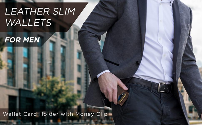 • SLIM AND STYLISH - Made with the Finest Full Grain genuine leather, Designed Quick Access ID Windows, Best Fits 6-8 cards plus US bills with no bulk - Wallet Size: 4.4" in. x 3" in. .25" in.