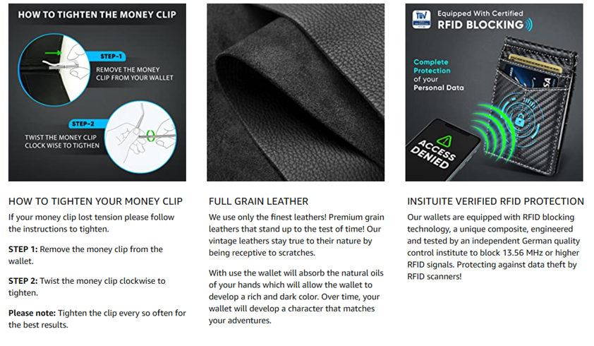 • SAFETY. PRIVACY. SECURITY - Our wallets are equipped with advanced RFID SECURE Technology, a unique metal composite, engineered specifically to block 13.56 MHz or higher RFID signals and protect the valuable information stored on RFID chips from unauthorized scans