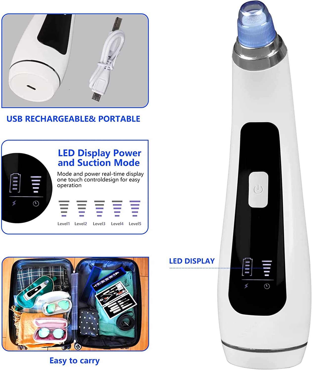 Blackhead Remover Vacuum Blackhead Removal Tool Blackhead Vacuum,USB Rechargeable Face Vacuum Acne Comedone Extractor Tool Pore Vacuum Cleanser Suction Tool with LED Display for Man&Woman