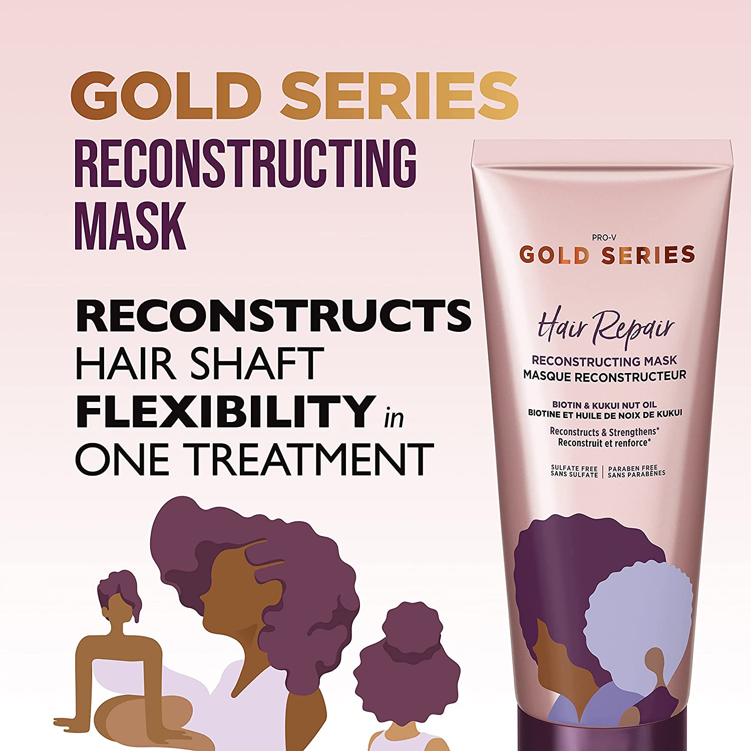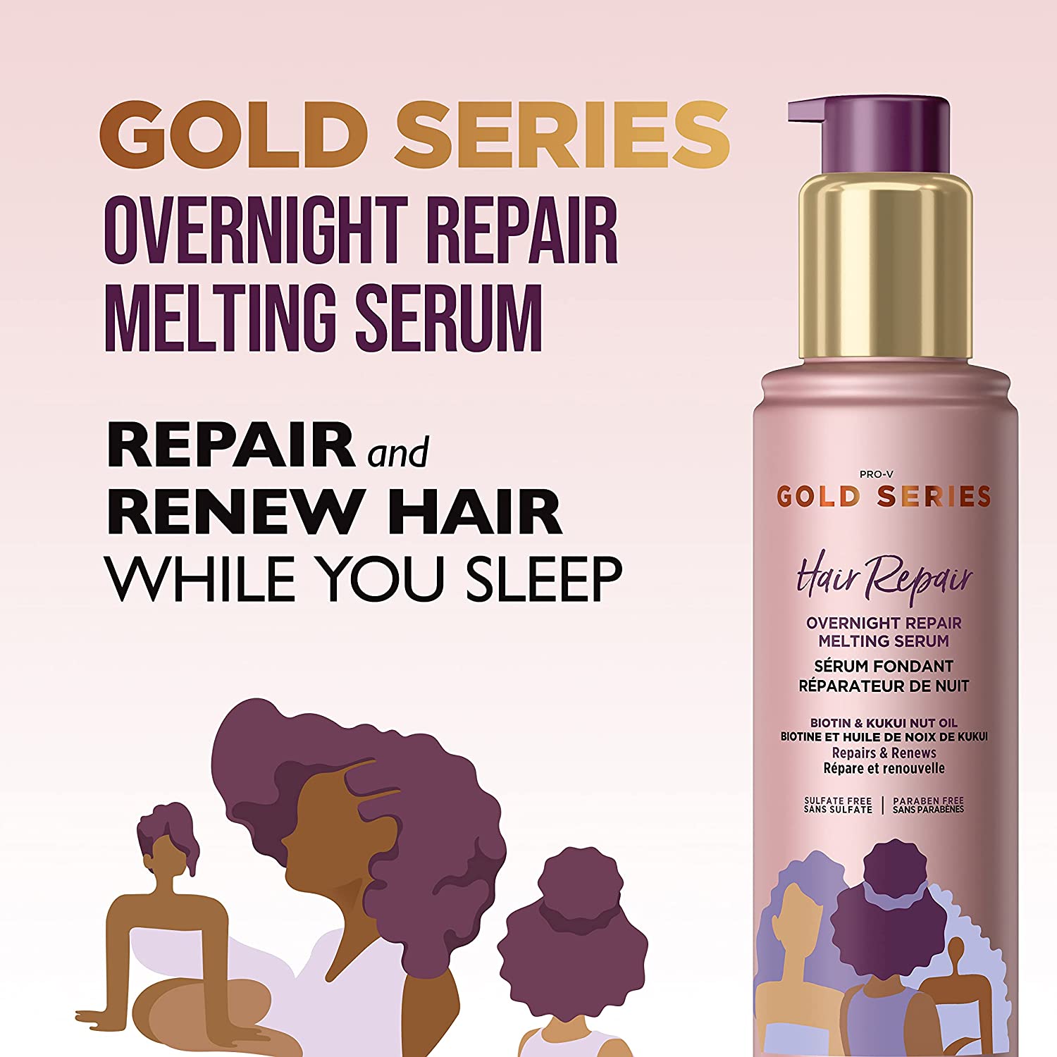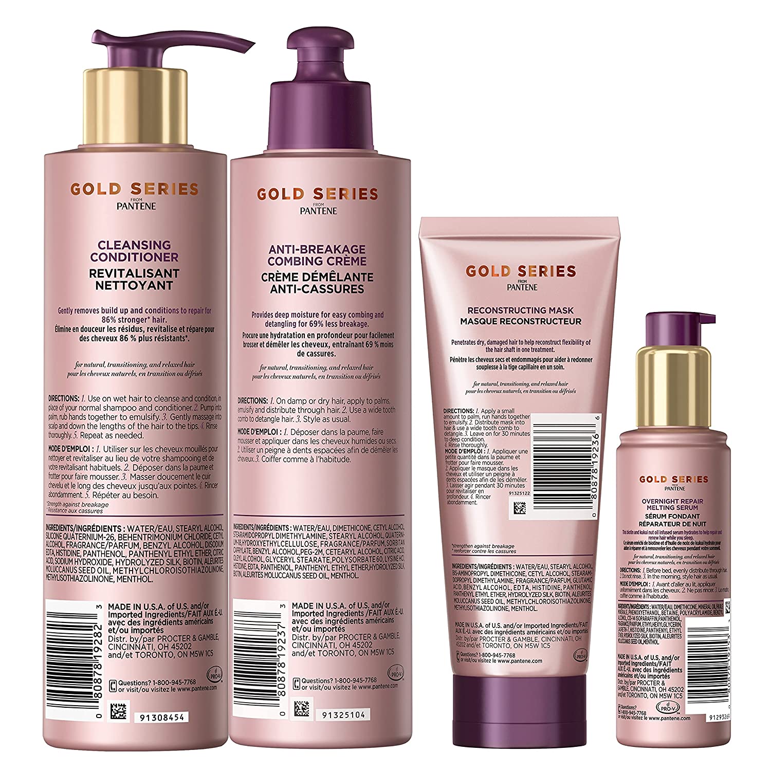 Pantene Gold Series Hair Mask, Anti-Breakage Combing Crème, Overnight Repair Serum, and Cleansing Conditioner, with Biotin & Kukui Nut, for Natural, Curly and Coily, Textured Hair, 815 milliliters