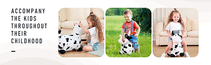 - AN INTERESTING & GREAT GIFT: Our cute bouncy house are popular among kids and make a great gift for any occasion. Kids can ride on cow like knights to fight bad guys (this is just role play), and the cute bouncy hopper will be a good friend to your child, accompanying them from day to night and bringing them fun. Our pretty hopper comes in exquisite packaging, making it a perfect gift for kids.