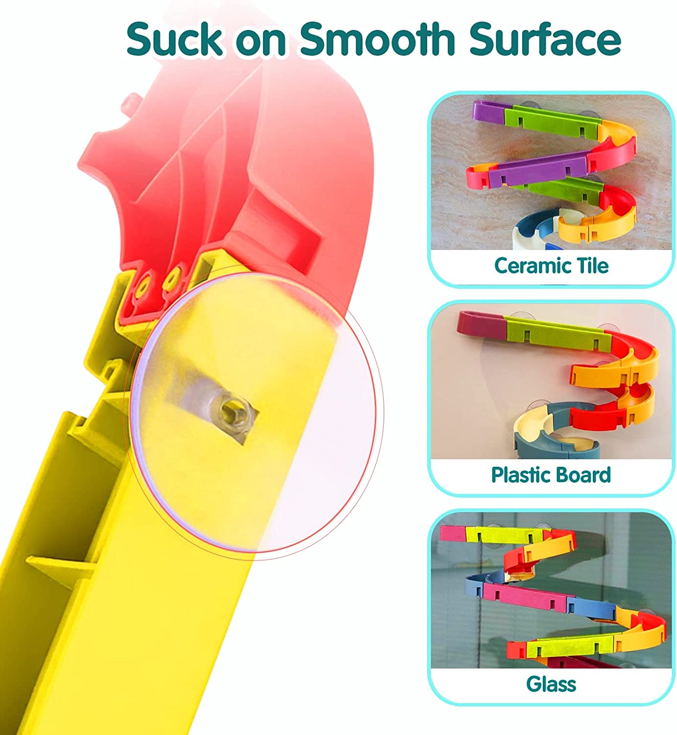 【High quality Kids bath toys】 bath toys for Kids 4-8 years old, our baby bathtub toys marble track is made of non-toxic plastic material, each piece has a smooth edge, good for use on other smooth surfaces (please make sure the smooth surface is dry, so that the suction is more secure), strong rubber suction, easy to install and remove, all accessories are made of high quality materials. Ensure the safety and health of Kids.