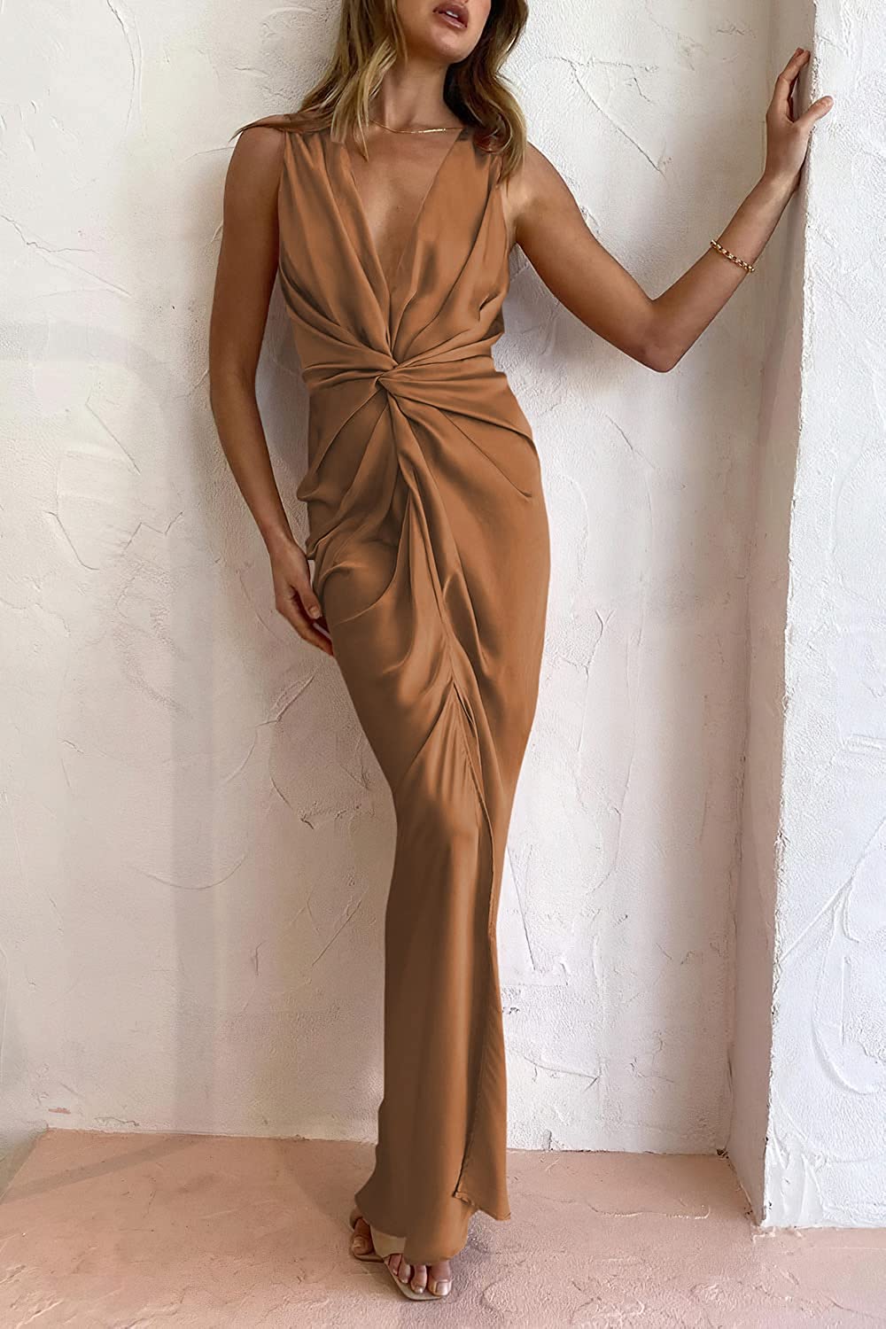 STYLISH DESIGN: Ruched Bodycon Dress For Women/Deep V Neck Satin Dress For Women/Sleeveless Maxi Dress For Women/Twist Front Dress For Women/Split Dress For Women/Solid Color Tank Dress For Women/Evening Party Dress For Women/Wedding Guest Dress For Women/Cocktail Dress For Women/Summer Dress For Women Trendy