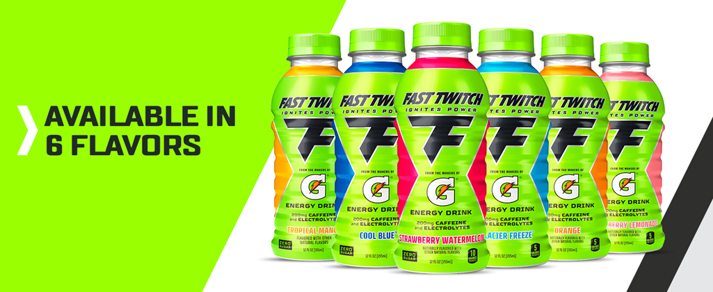 Introducing Fast Twitch, a new energy drink from Gatorade. Developed with 200mg of caffeine to help athletes focus the mind and power the body for athletic performance.