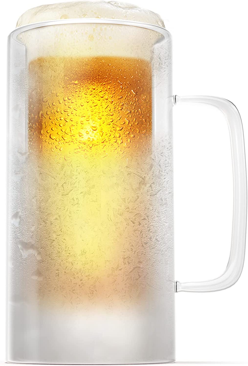 The double walled glass is made of ultra durable borosilicate glass with a 16-ounce capacity, enough for a pint of his favorite beer!