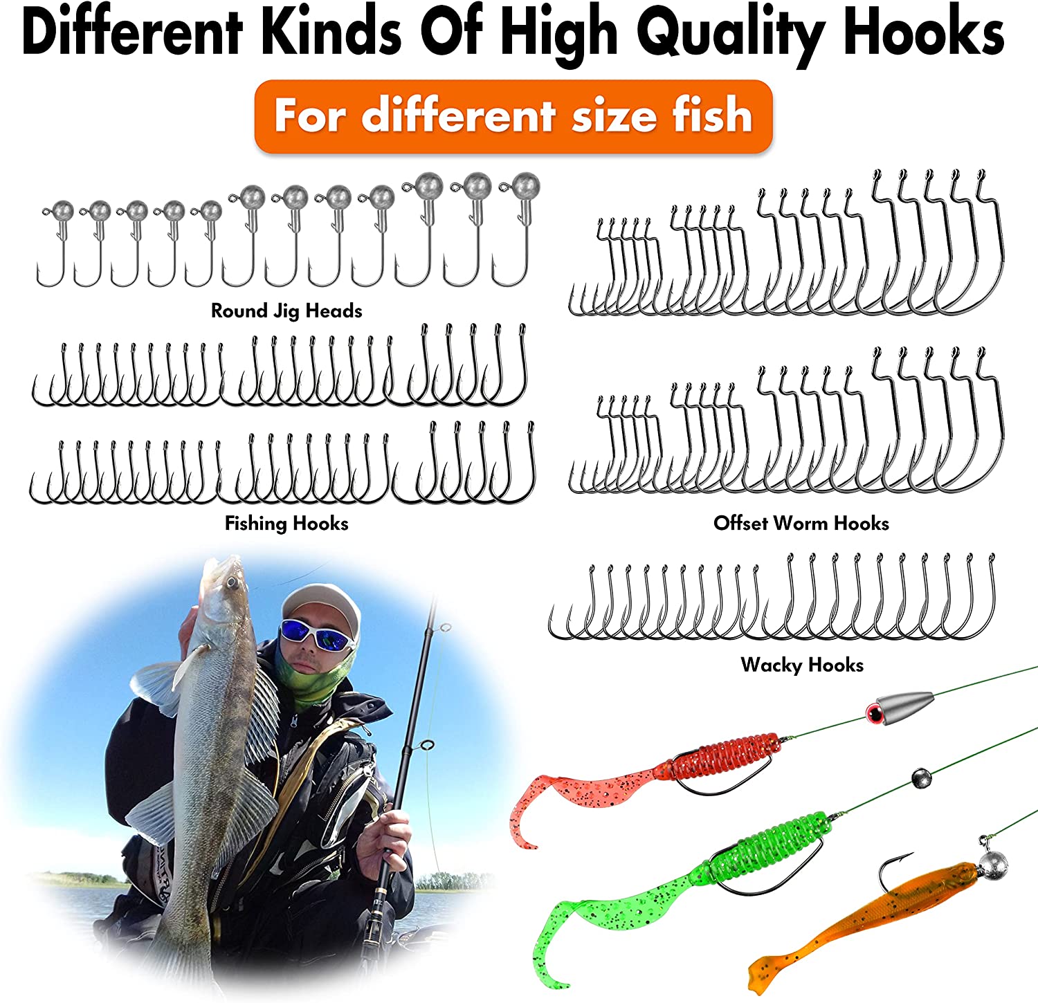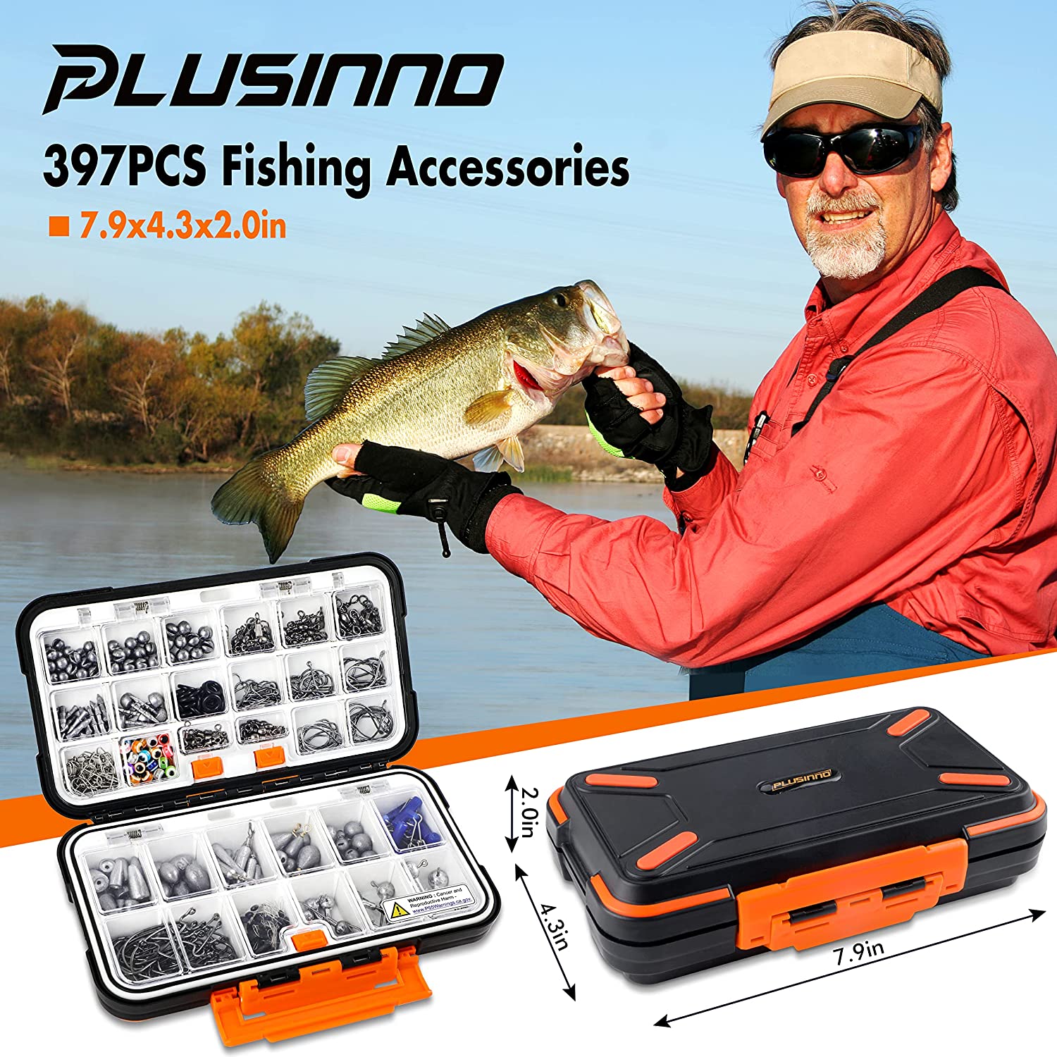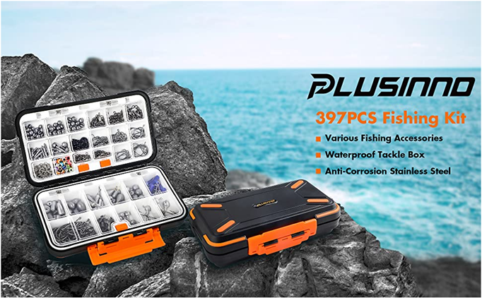- 【Complete Fishing Tackle Kit】- PLUSINNO 397pcs fishing gear is loaded with 12 fishing rigs for fishing enthusiasts and beginners. It collects nearly all fishing accessories including Fishing Hooks, Round Jig Heads, Round Split Shot, Egg Sinker, Dipsey Swivel Sinker, Drop Shot Weights, Bullet Weights, Nail Weights, Neko Sinkers, Fishing Snap, 4 kinds of different Fishing Swivels, Fishing Sinker Slider, Fish Eye Beads, Wacky Rings and Bobber Stops.