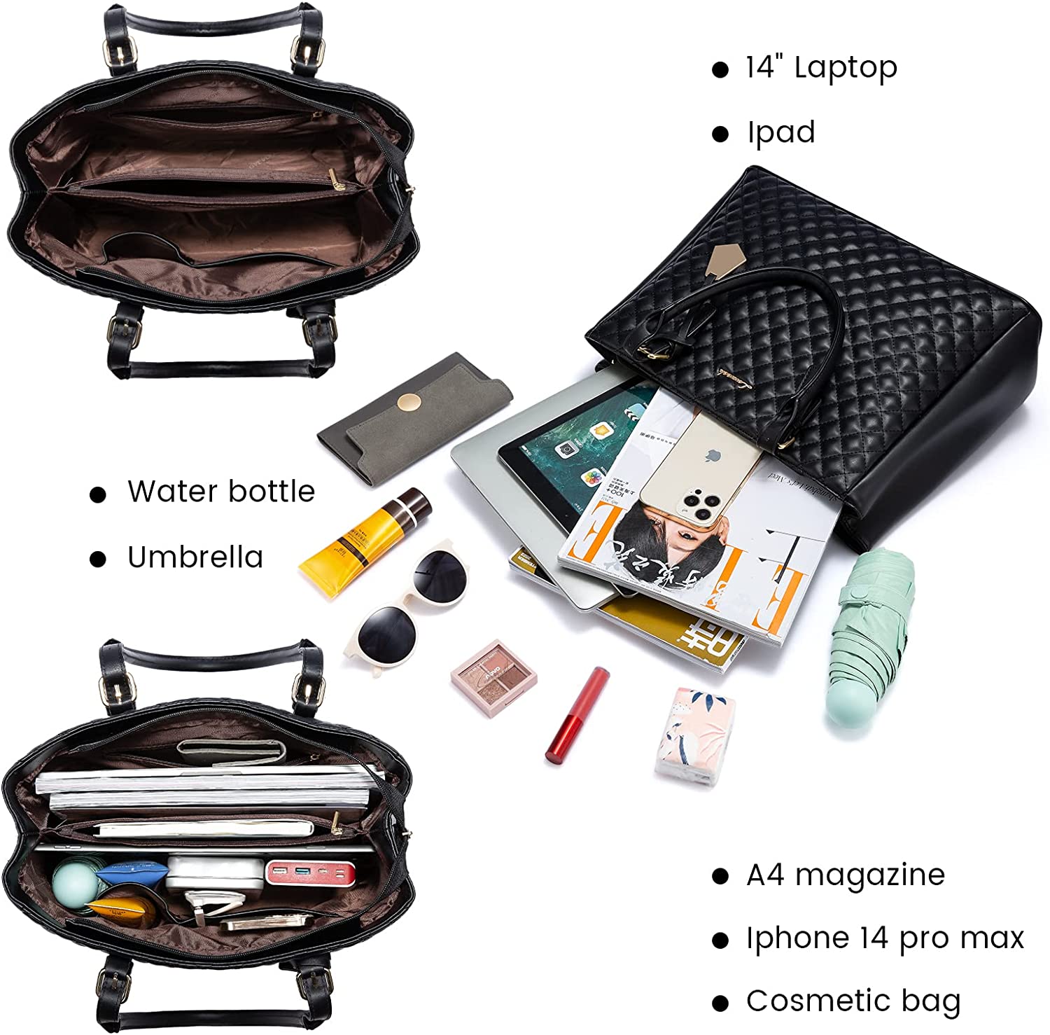 【SUITABLE SIZE AND WEIGHT FOR SPACE】The size of this shoulder purse is 14.5*5.4*10.5 inches, and the weight is 2.2IB. As a large leather handbag, it has three compartments (the middle zipper compartment and one open compartment on each side), a zipper pocket, two open pockets, and a zipper pocket on the outside of the bag, which can hold mobile phones, wallets, Umbrellas, water glasses, cosmetics, A4 magazines, and notebooks are also a very suitable work shoulder bag for women.