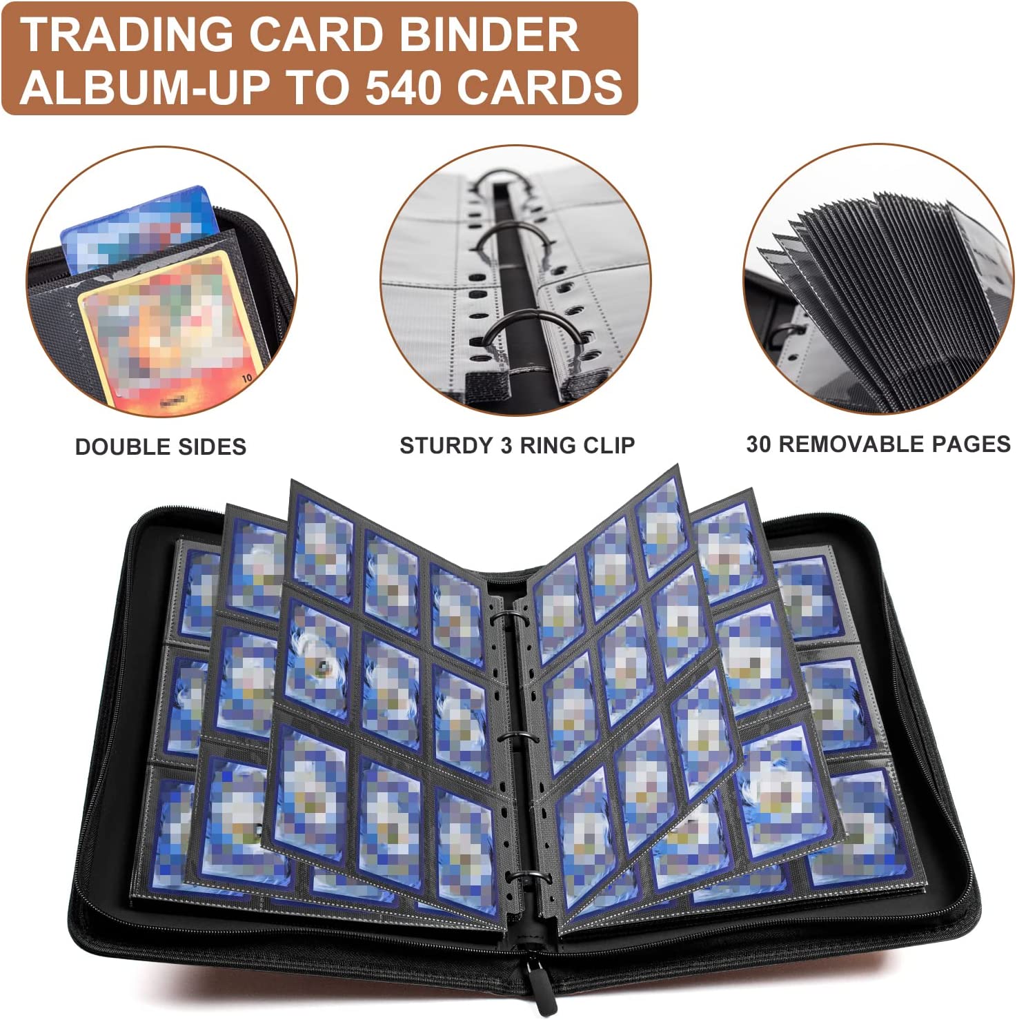 3 RING Binder DESIGN - The thicker height of the card binder ensures full 540 cards won't bend or extrude your cards and closed smoothly. More pages can be added or removed easily.