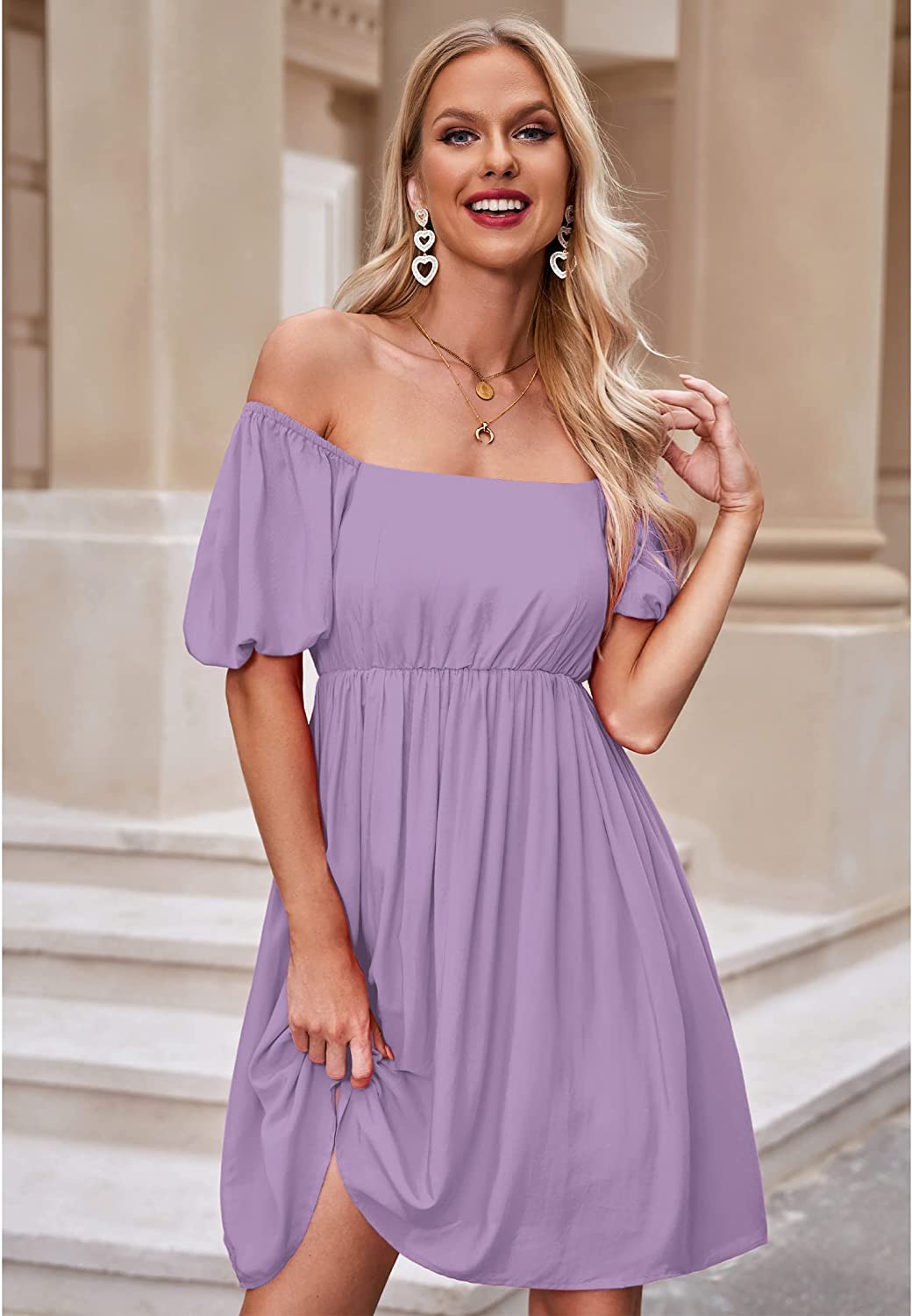 These going out dresses for women feature square neck, short puff sleeves, smocked back, a-line high waist swing dress. The vacation dresses for women are made of breathable material which is perfect for spring, summer and fall.