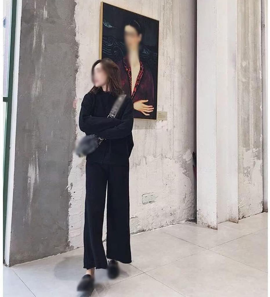 Walnut Age-reducing Thin Knitted Suit Women's Slit Sweater Wide-Leg Pants Autumn and Winter Two-Piece Set (Color : D, Size : S Code)