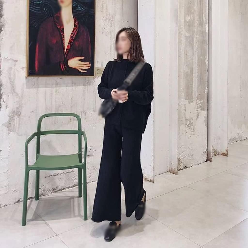 Walnut Casual Wide-Legged Pants Knitted Suit Autumn and Winter Loose Wool Sweater Top High-Waisted Pants Two-Piece Suit (Color : D, Size : S Code)
